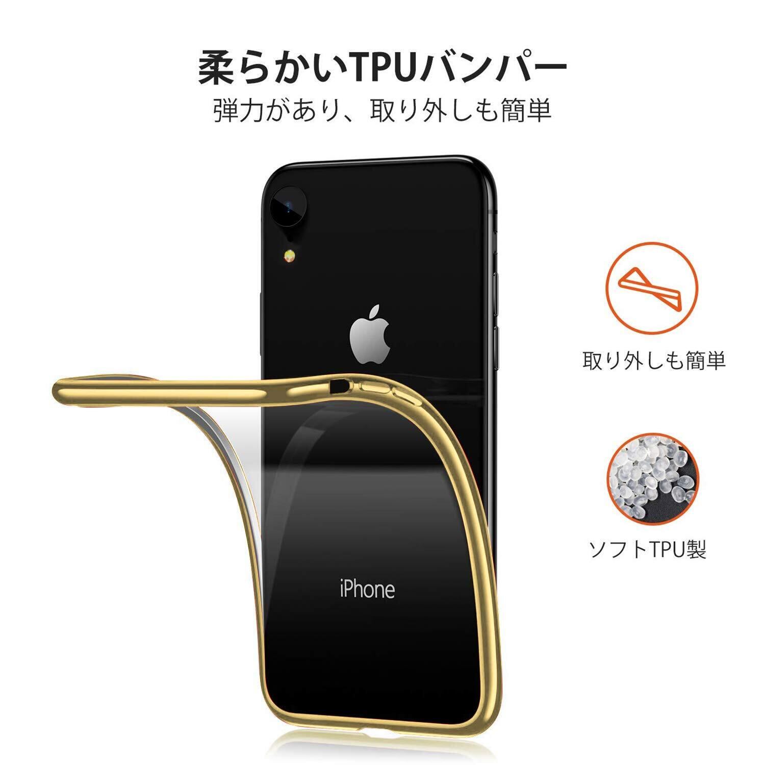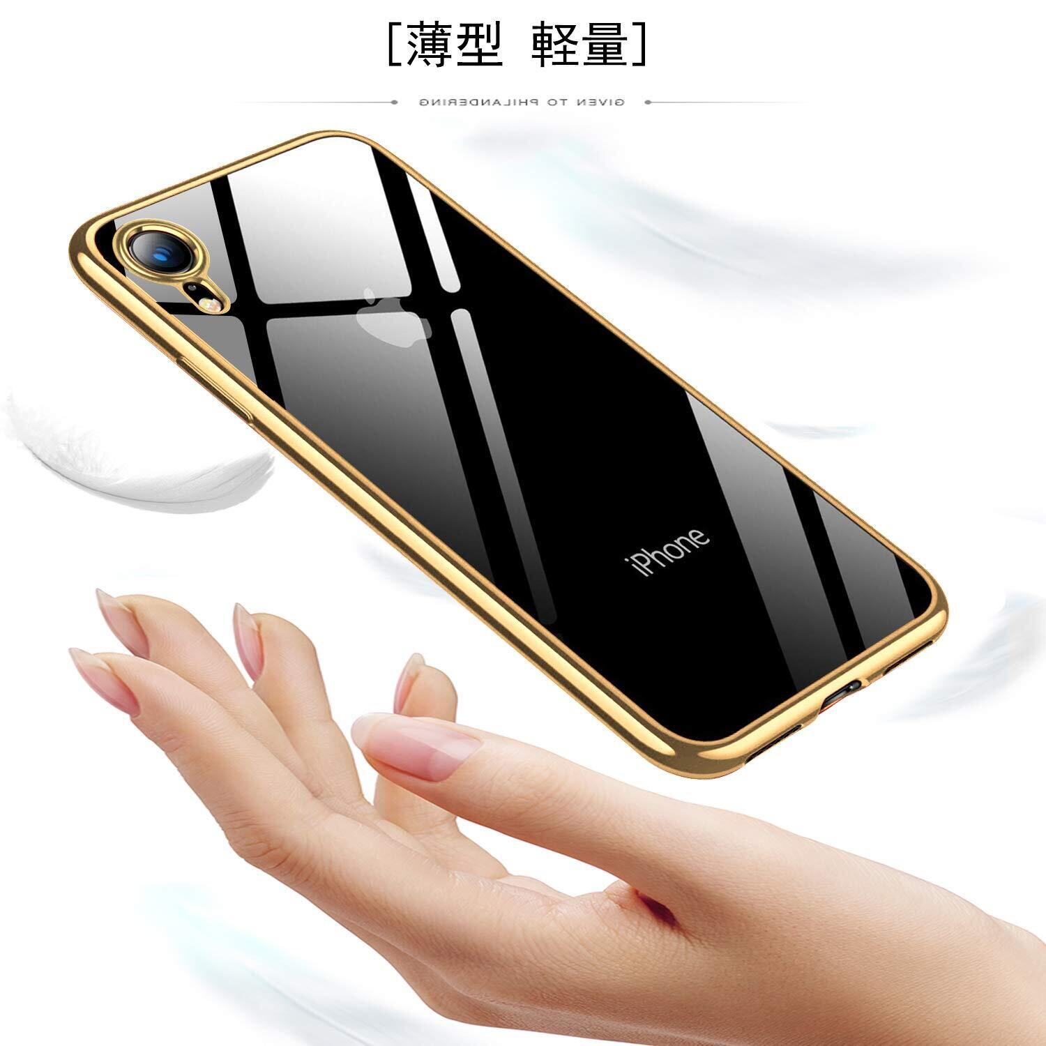 iPhone XR ケース クリア 透明 tpu シリコン メッキ加工 スリム 薄型 6.1インチ スマホケース 耐衝撃 黄変防止 一体型 人気 携帯カバー ゴールド