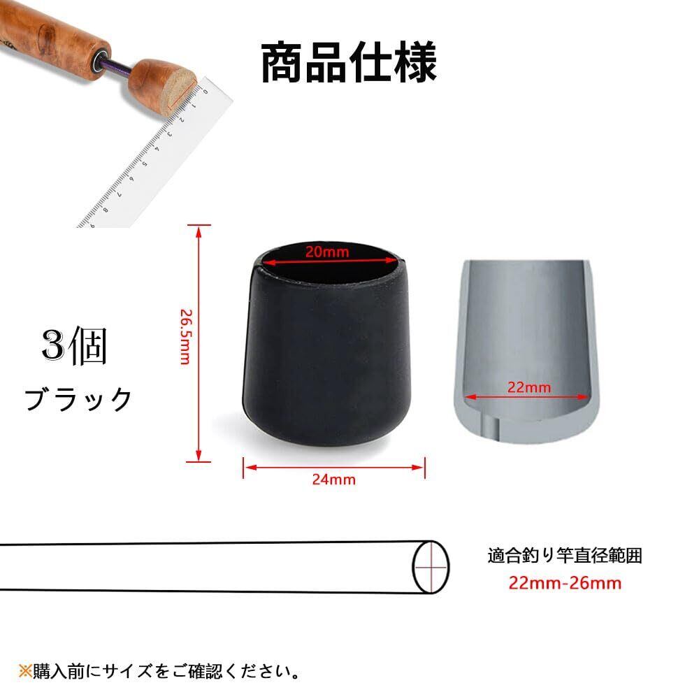 1.適合釣り竿直径範囲:22mm-26mm。サイズ:全長26.5mm;底部内径22mm ;底部外径24mm;開口部直径20mm;入り数3個。※購入前にサイズをご確認ください。
