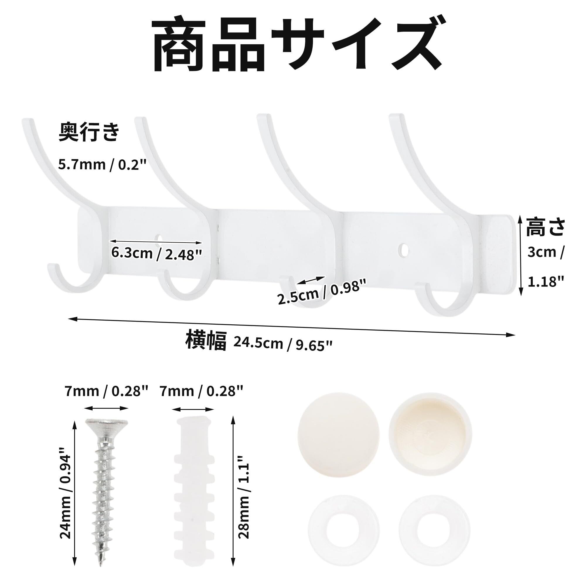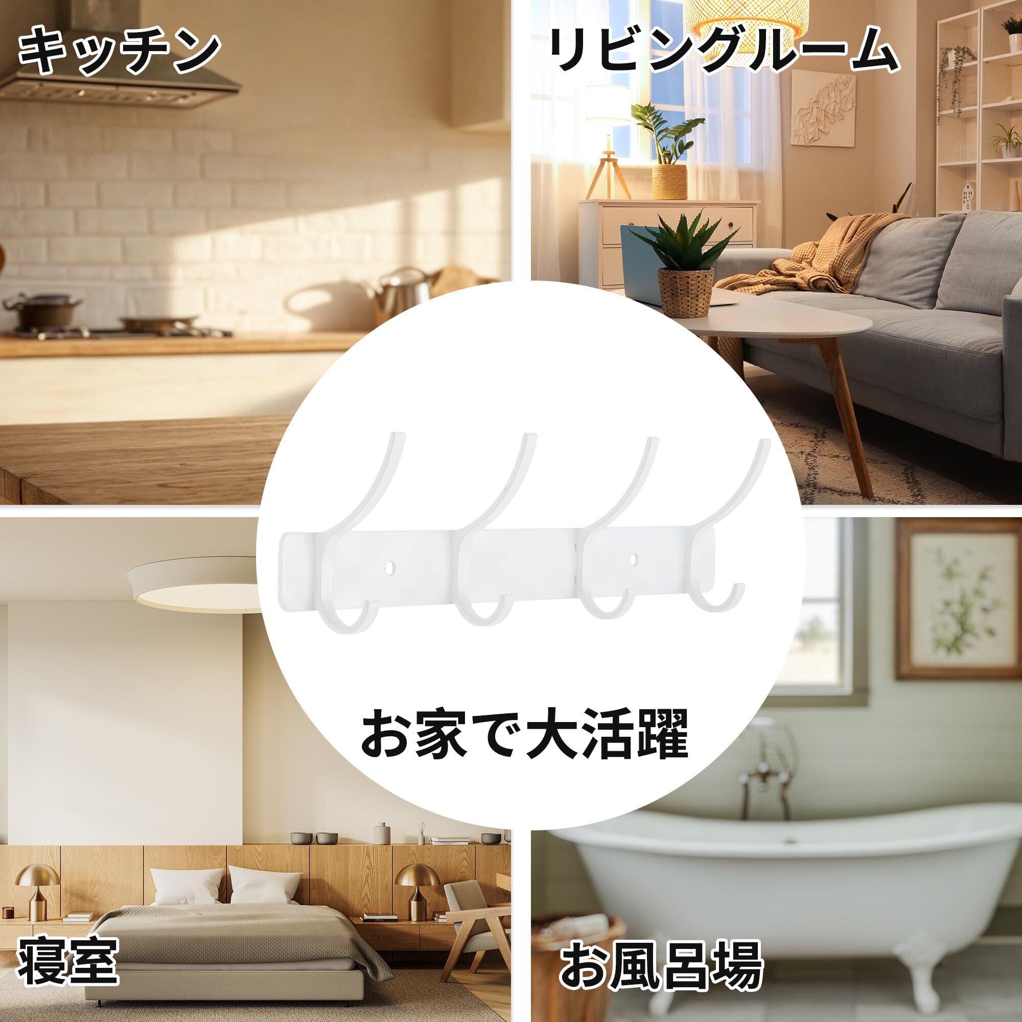 CAPASTEC 2個セット 壁掛けラック ウォールハンガー コートラック 壁掛けコートフック 掛けフック 4連 ハットラック バスルーム用 タオルフック ホワイト