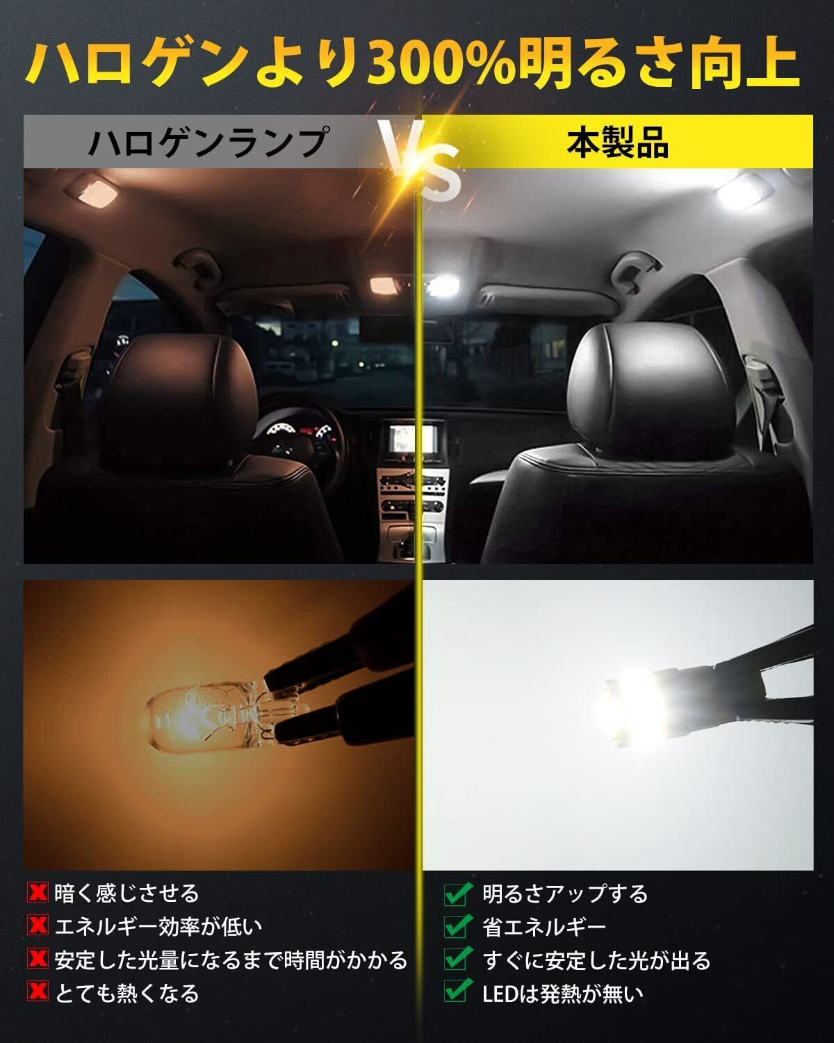 【T10 LED 爆光】2023最新の高発光効率のLED素子10連搭載、明るさ1個240LMで純正バルブに比べて300% 明るさUPします!市販品より2倍以上のルーメン数、極の明るさが実現します。純正ホワイトの発光していて、夜の車内照明をやさしくなれます。