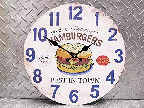 アメリカンウォールクロック 時計 34cm (ハンバーガー A111) 壁掛け時計 ダイナー カフェ 大きい ヴィンテージ風 ガレージ おしゃれ 西海岸風 インテリア アメリカン雑貨