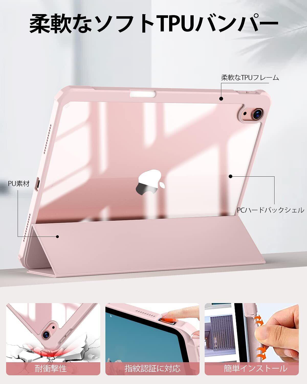 KenKe iPad (A16) 11世代 ケース (11インチ、2025モデル) iPad 第10世代 10.9インチ 2022 透明バックカバー 三つ折スタンド スリープ機能 軽量 薄型 傷つけ防止 PU合成レザー TPU材質 Apple Pencil 収納可能 ピンク