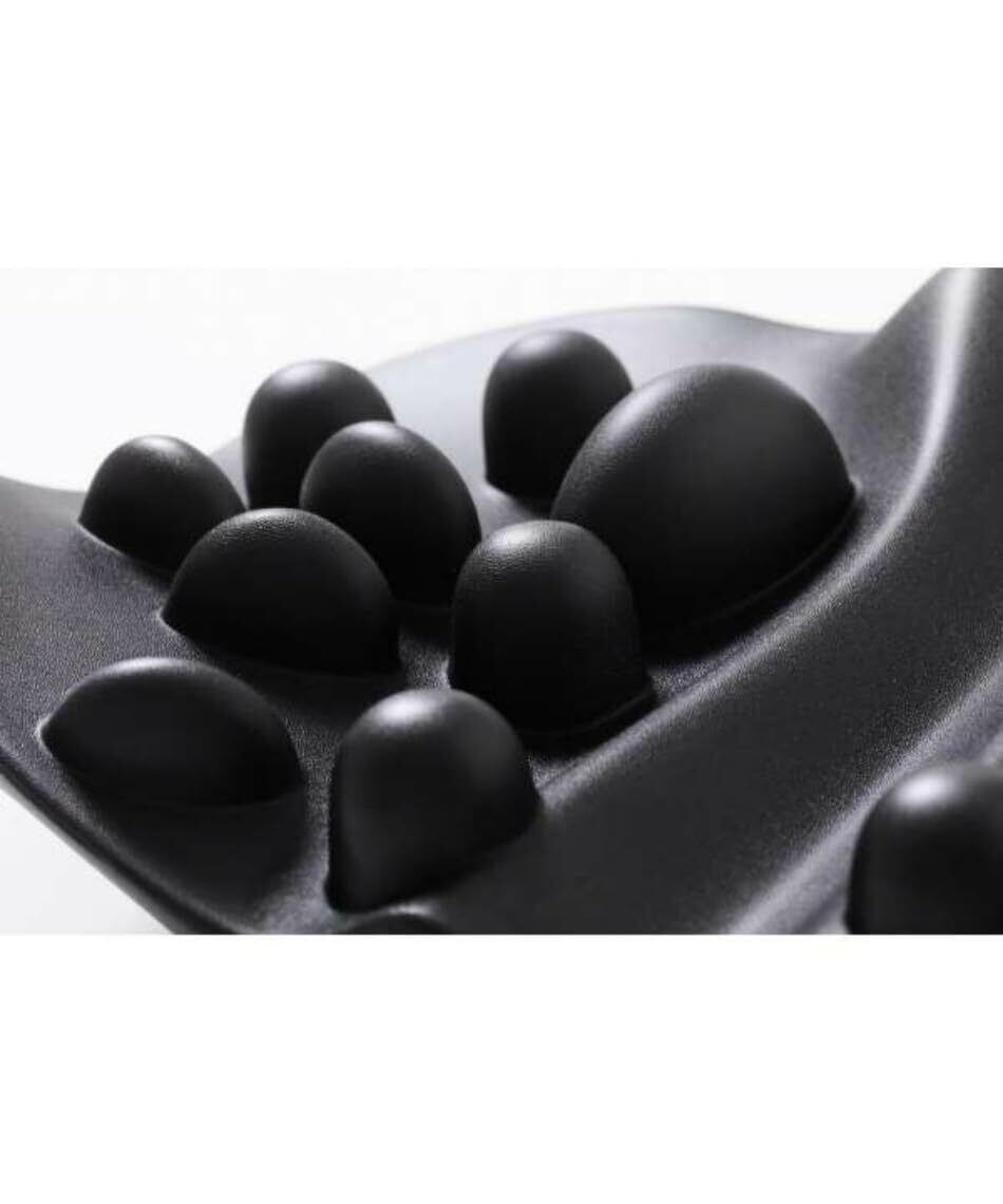 肩甲骨(肩胛骨)とその周りの筋肉を指圧する18個の突起と、背中をサポー トするこだわりの曲面形状。