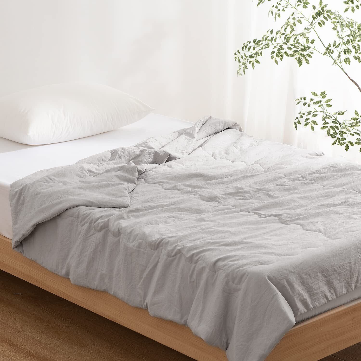 Atokazo 肌掛け布団 シングル 夏用 超軽量 肌にやさしい 薄手 TEIJIN中綿 防菌防臭 洗いざらし シワ加工 やわらか 速乾通気 冷房対策 洗える 掛け布団 肌掛け キルトケット 140X190cm ライトグレー