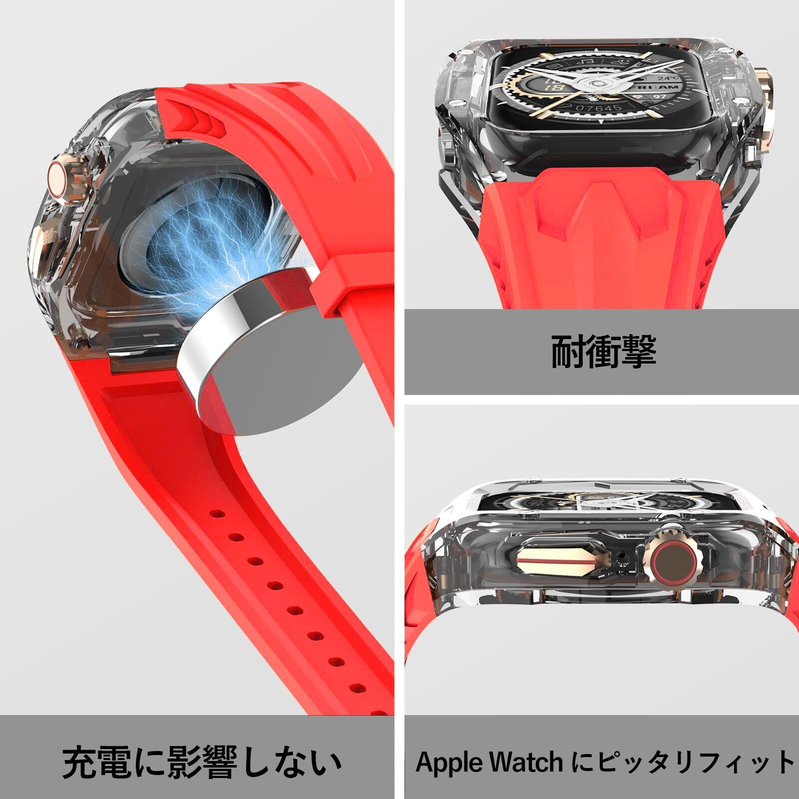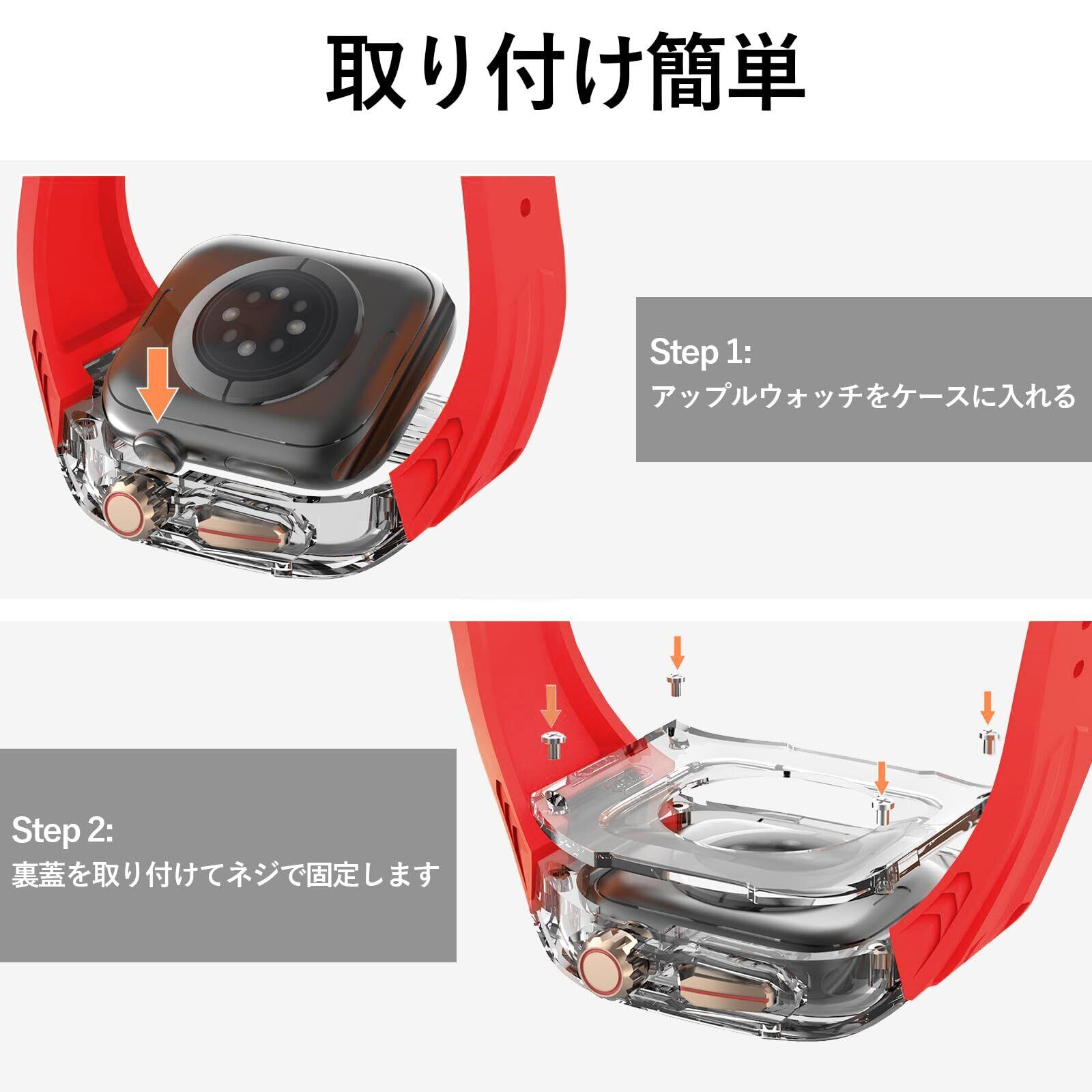 [YOFITAR] for Apple Watch バンド ケース一体型 49mm/45mm/44mm/42mm/41mm/40mm TPU素材 アップルウォッチバンド カバー付きApple Watch Series Ultra2/Ultra/9/SE/8/7/6/5/4対応 耐衝撃 男女通用apple watch アクセサリー (45mm/44mm,レッドバンドとブラックケース)