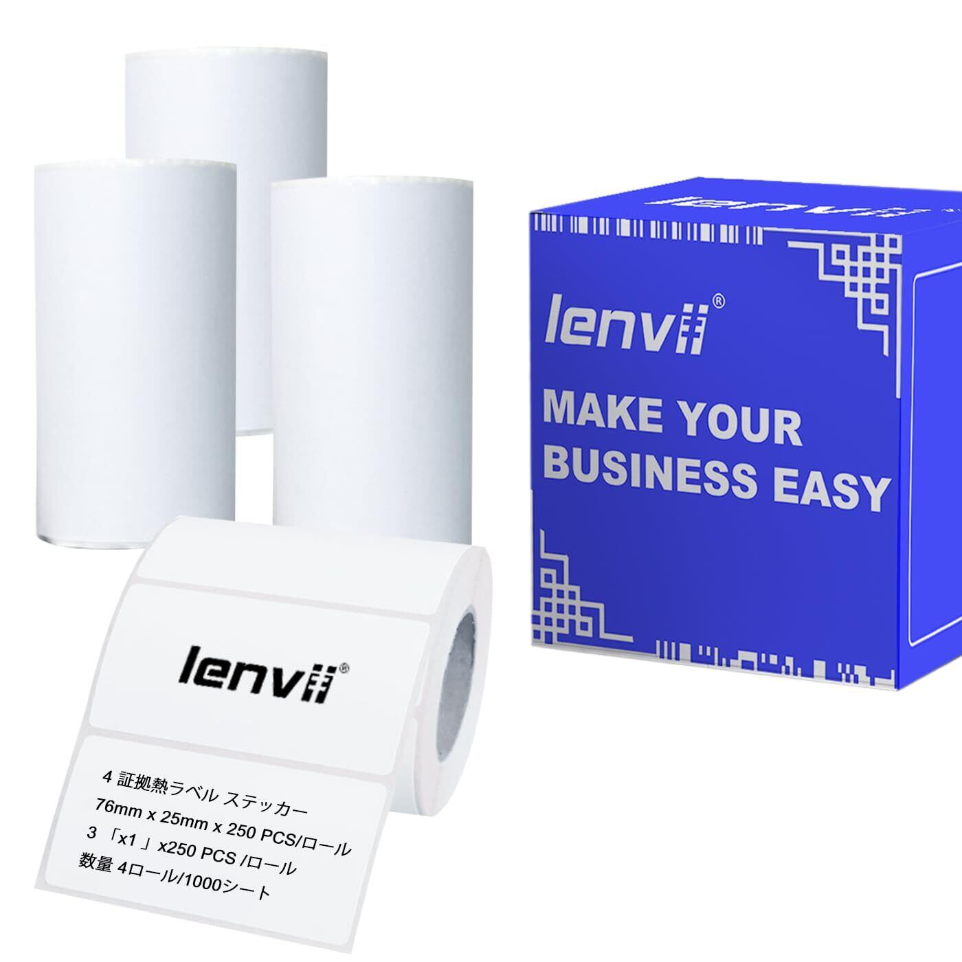LENVII 76x25mm 感熱ラベル|耐水・耐油・防破れ・高耐熱|4巻セット(250枚/巻)|黒文字印刷|倉庫管理・食品ラベル・配送シールに適 デスクトップ感熱ラベルプリンタ用ラベル汎用感熱ラベル