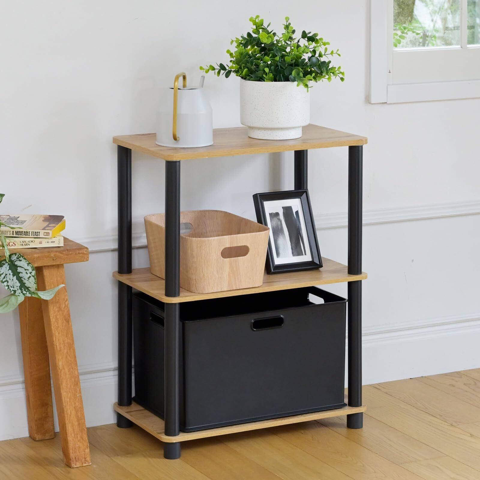 山善(YAMAZEN) ラック 3段 棚 組立カンタン 軽量 オープンラック シェルフ 収納棚 一人暮らし 幅47×奥行27×高さ63.5cm 組立品 オーク4/ブラック LSR-3(OAK4/BK) | yankees