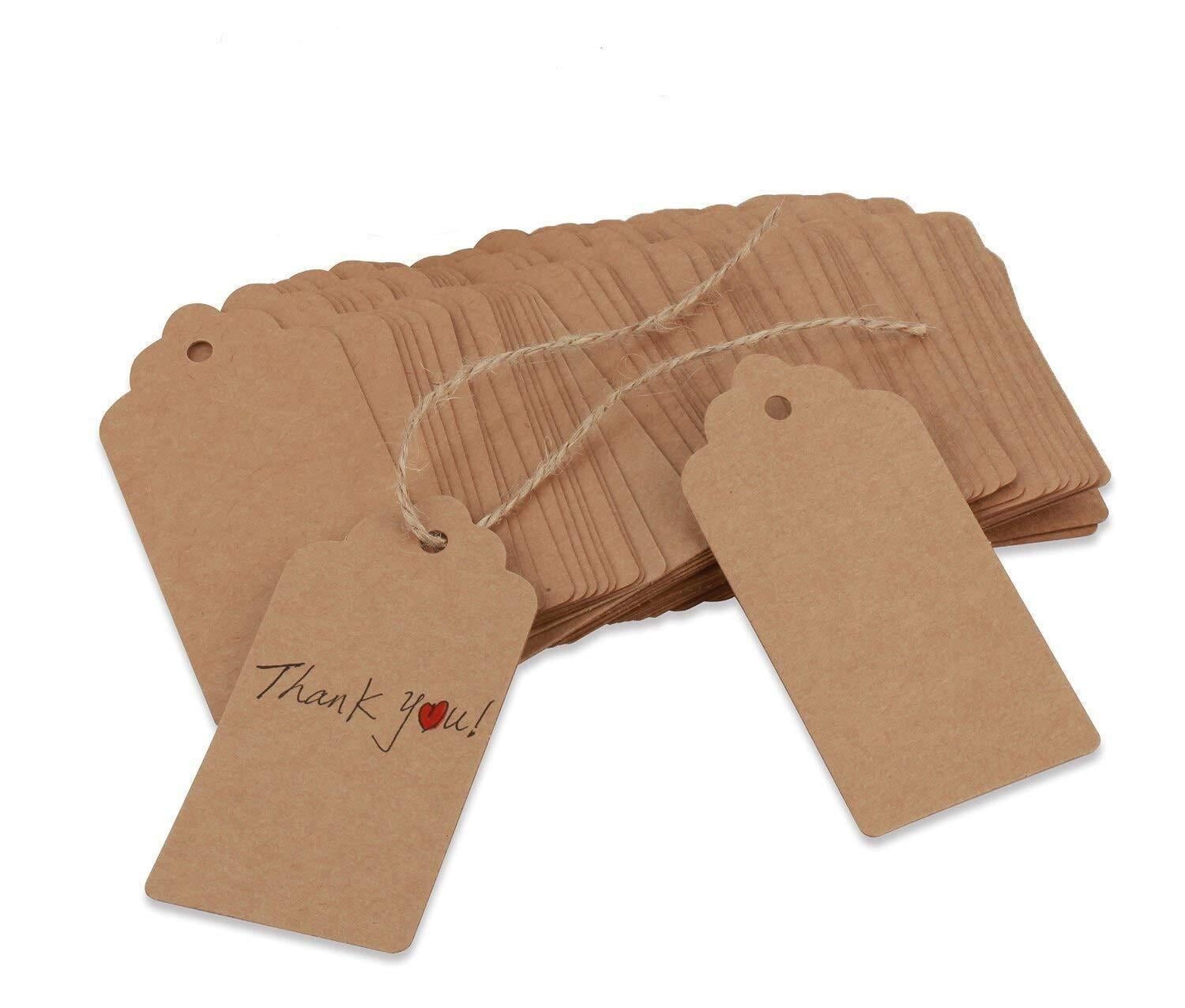 100枚 長方形 クラフトタグ 値札 (サイズ:43mmx93mm) 「茶褐色」 糸付き下げ札 無料の麻糸付き(長さ:30m) 結婚式 パーティー 撮影用