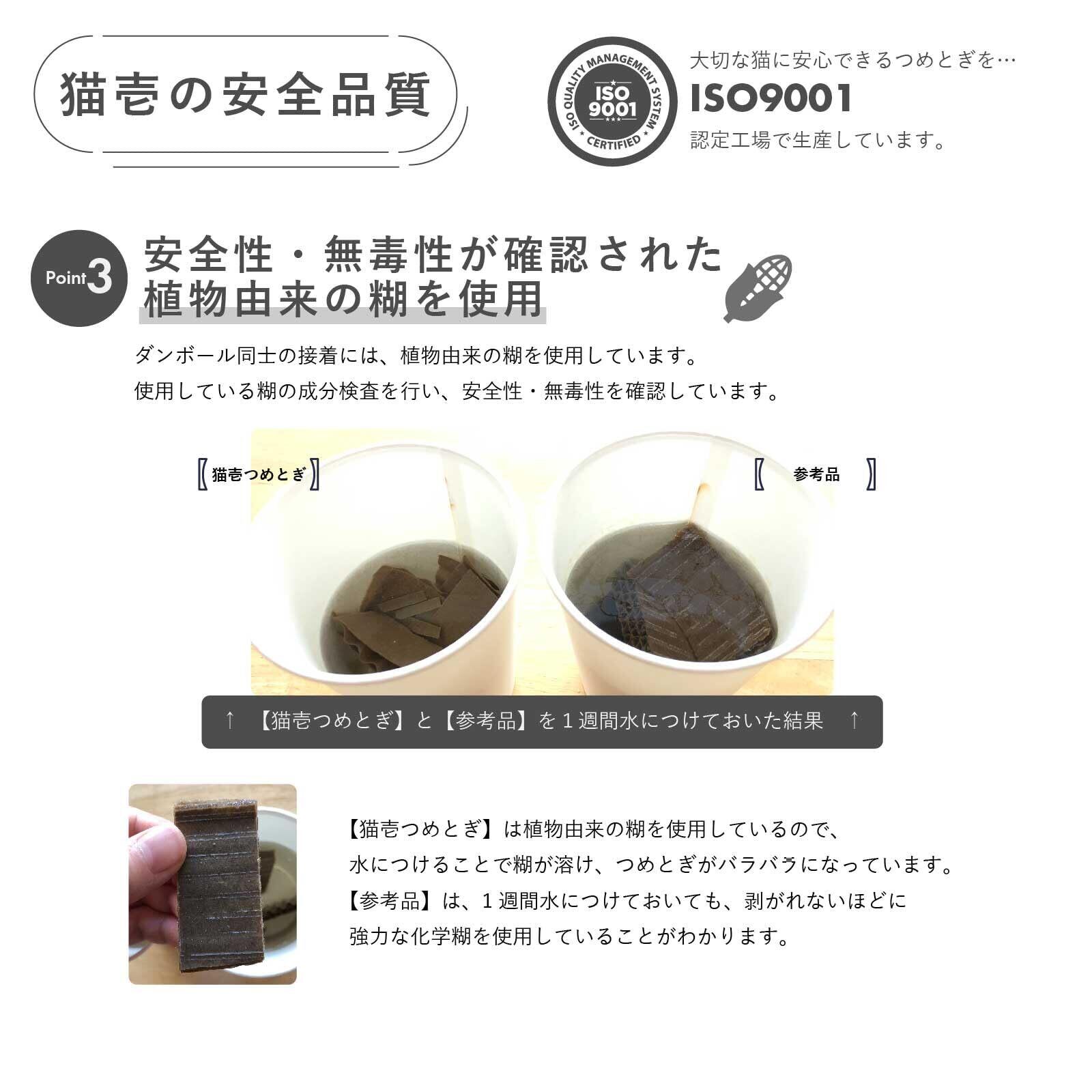 ●本品はダンボール製のため、火気のそばに置いたり、熱湯をかけたりしないでください。人やペットのやけど、火災、製品の変形等の原因になります。 ●必ず安定した場所に設置してください。 ●子供がいたずらしないようにご注意ください。 ●猫がダンボールの角で目や皮膚の弱い部分を強く擦らないようにご注意ください。 ●開封直後にダンボール特有の臭いが気になる場合は、風通しのいい場所で陰干しをしてからご使用ください。 ●猫の体に害の少ない、とうもろこし製の接着剤を使用しております。アレルギーをお持ちの場合は、念のためご使用をお控えください。 ●乗ったり、無理な力をかけたりしないでください。 ●腐食やカビ、変形、変色の原因になりますので、水分、油、洗剤等が付着した場合は、素早く拭きとってください。 ●万一、かきクズが目に入った場合は、速やかに大量の水で洗浄し、医師の判断を受けてください。 ●飛び散らかったかきクズは掃除機で吸う等、早めにお片づけください。 ●天災などの不可抗力や、不当な修理・改造による故障・破損に対する補償等は致しかねます。 ●本品を破棄される際は、お住まいの自治体の取り決めに基づいた処理をお願いします。 ※製品の仕様は予告なく変更することがあります。