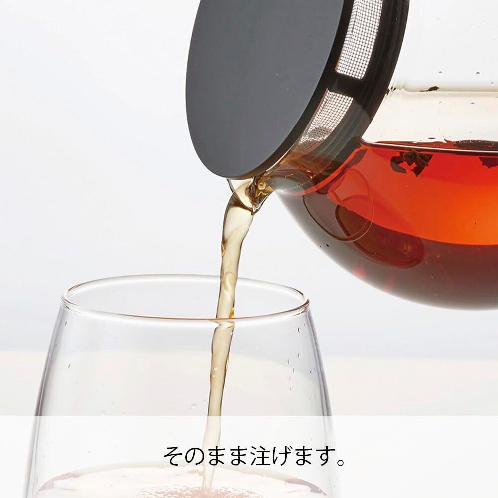 【耐熱ガラス製】 本体ガラスは日本製の耐熱ガラス。温め直したいときは、フタをしたまま電子レンジ加熱もOKです。ガラスボールの透明感は、茶葉が開く様子や飲み頃が分かります。