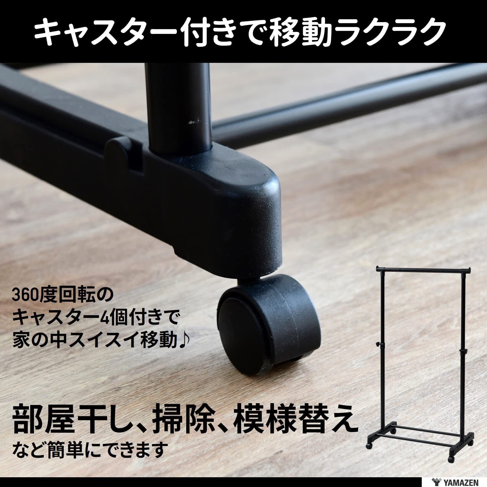 山善(YAMAZEN) ハンガーラック (パイプハンガー) キャスター付き 縦伸縮 シングル 幅75×奥行43×高さ89-152cm 組立品 オールブラック MKS-S(ABK)