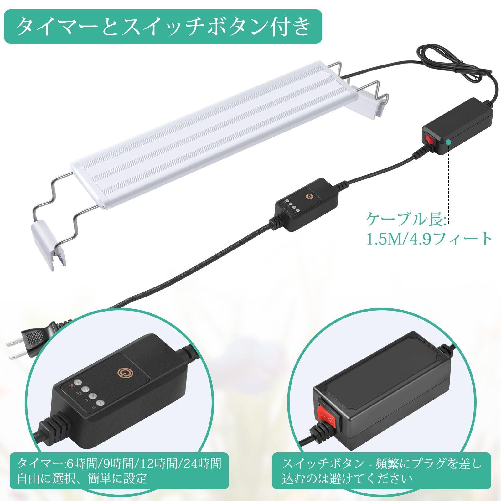 FEDOURフルスペクトル水槽照明LEDライト:タイマー付き 30㎝40㎝60㎝の高輝度水槽ライト、伸縮可能なブラケット付き、水草育成/アクアリウム照明用ランプ、白色プラスチックケースLEDランプ
