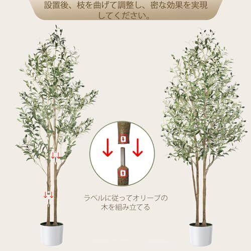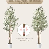 【仕様】このオリーブの木の高さは150CM、重さは4.3KGです。二つの幹があります。自然にフレッシュで本物にとても近い色に見えます。場所によって真正性を見分けがつかないほど枝葉と実が特徴で、近くで見ると細部までリアルに再現されています。環境にやさしく、日当たりのナチュラルな雰囲気を作り出しています。