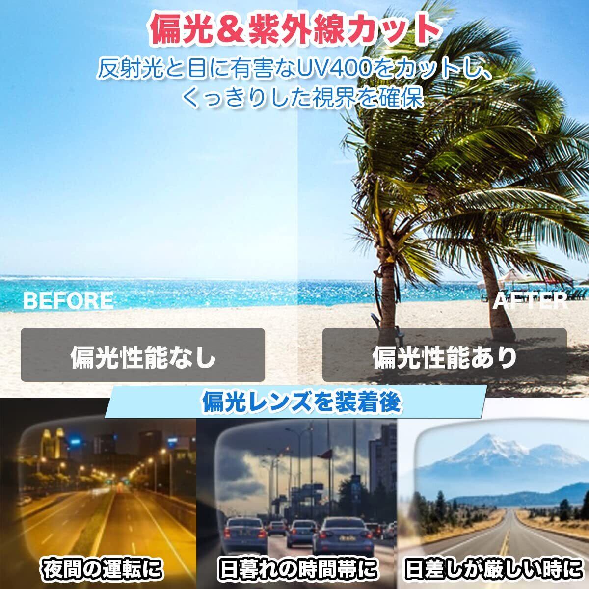 [ZesMark] サングラス 偏光 UVカット 【メガネ拭き ケース付】 眼鏡の上から クリップオン ワンタッチ装着 軽量5g