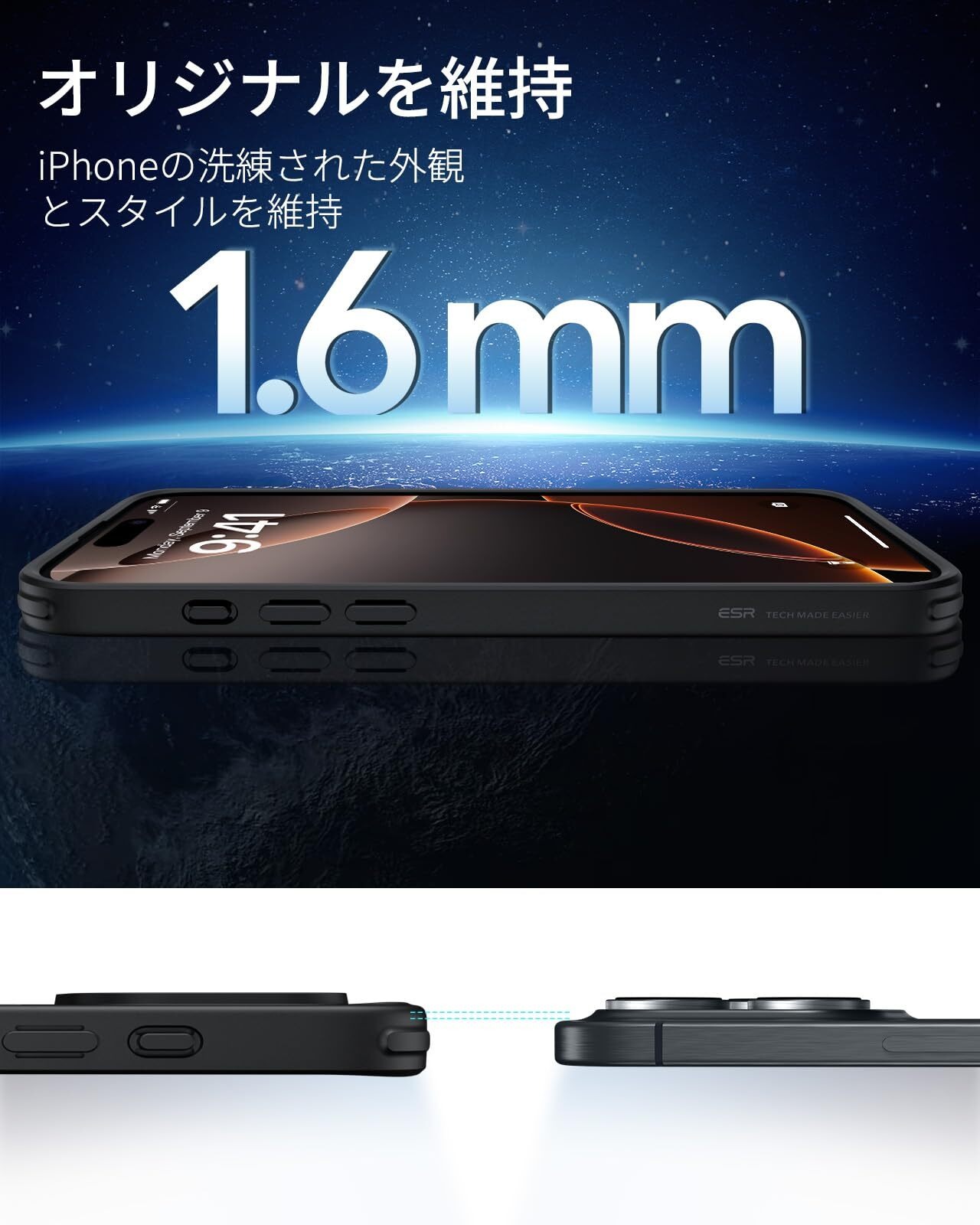 【オリジナル維持】傷がつきにくく、透明度の高いアクリル製の背面により、iPhone 16 Pro のオリジナルで洗練された本来の外観をキープします。対応機種:いphone16pro ケース