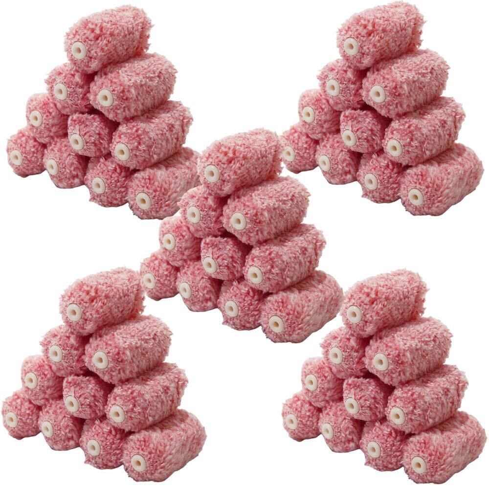 ハケ市 ミニスモール ローラー マイクロファイバー 混毛 レッド 2インチ 11mm 50本 セット 塗装 ペイントローラー