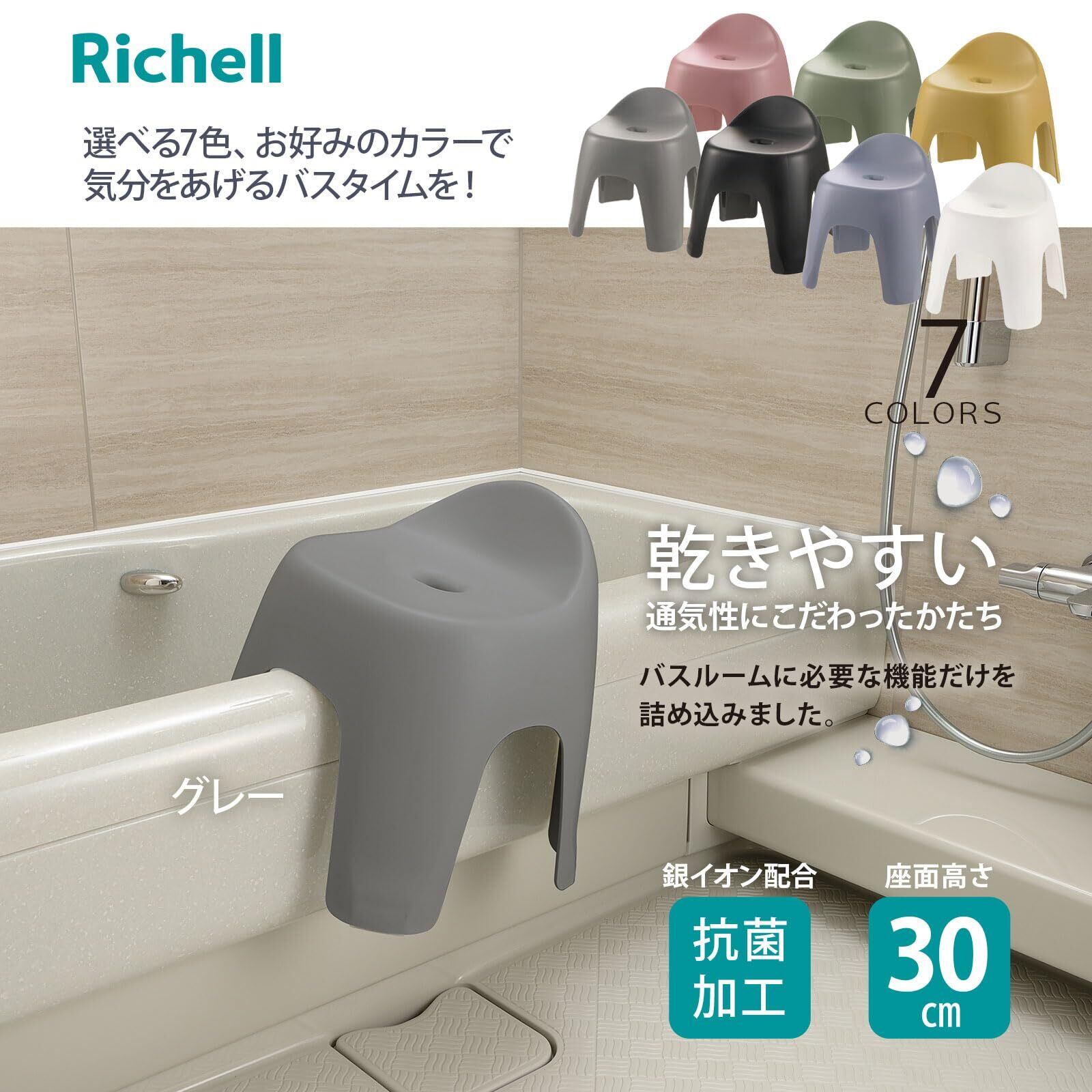 リッチェル(Richell) 風呂椅子 ハユール 腰かけ TH グレー 30㎝ 日本製 抗菌加工 バスルーム チェア スツール 浴室 高め 介護 カビない おしゃれ マグネット 介護 引っ掛け クリア アクリル 木製 掃除 水あか 赤ちゃん 110172