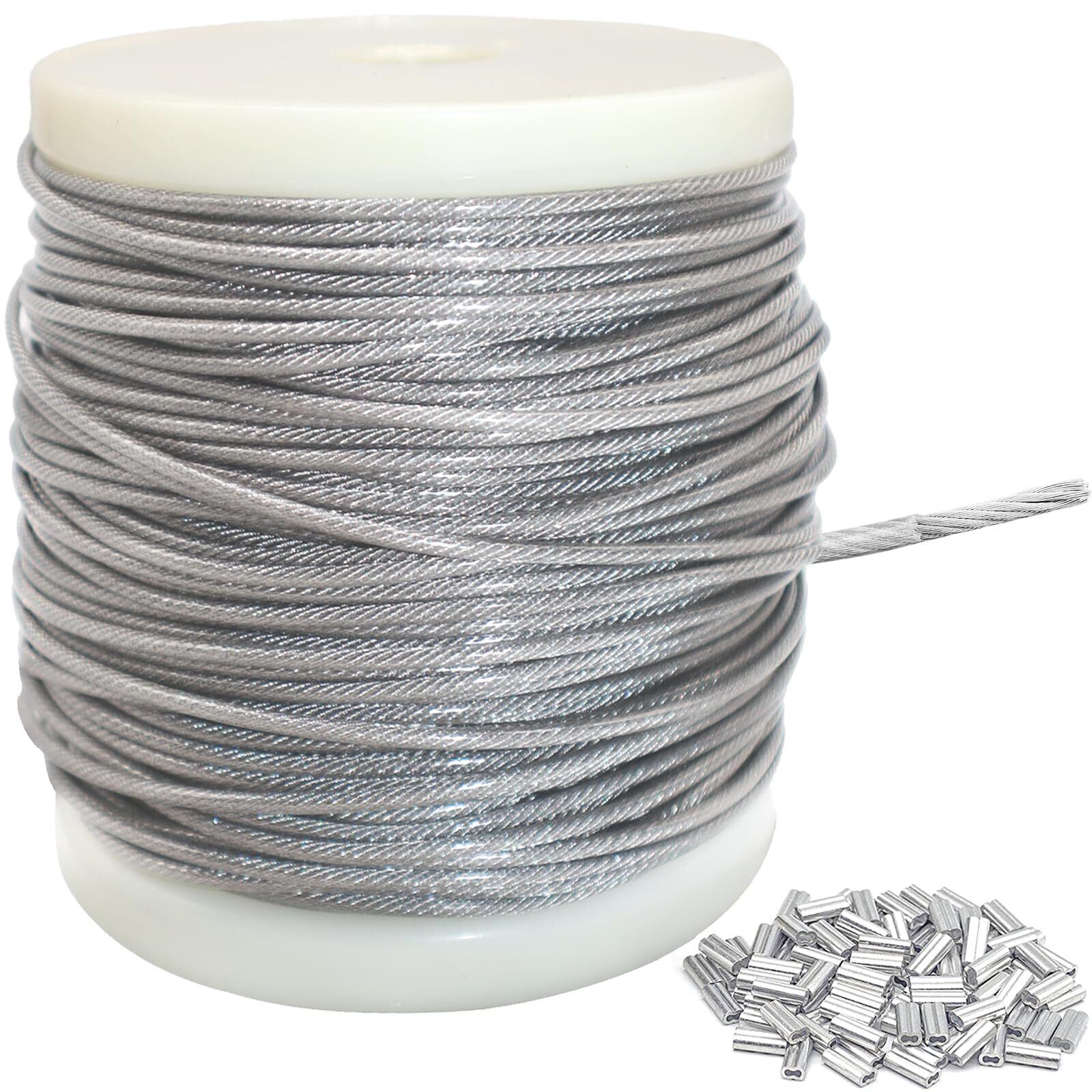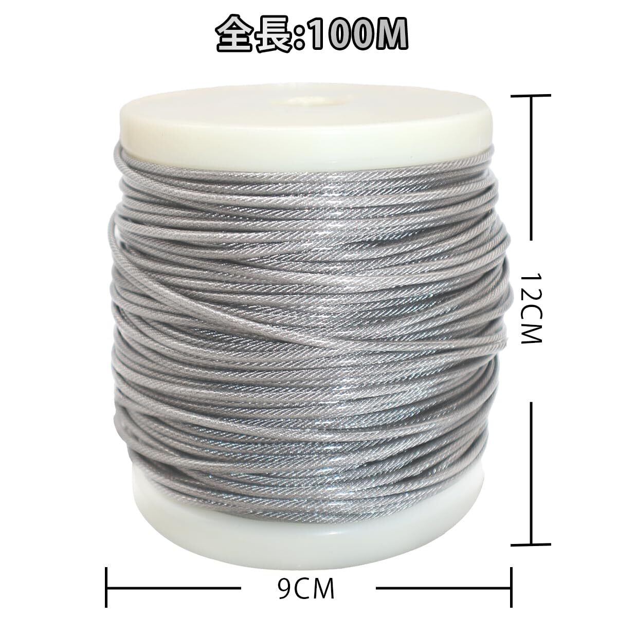 ワイヤー ステンレスワイヤー 径2.0mm 100m巻 構成7×7 ステンレスロープ ビニール被覆 アルミスリーブ付き 多用途 防錆性 地震対策 牽引 ガーデニング、釣り、物干し、DIYに適しています | yankees