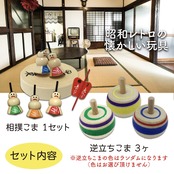 【安心の木製】金属部品を使わずすべて木でできた昔なつかしの木ごまです。木製なので小さなお子様でも安心してお使い頂けます。また簡単に回せる手回しこまの逆立ちこまと相撲こまの2種セットなのでどんな方でも楽しく遊べます。