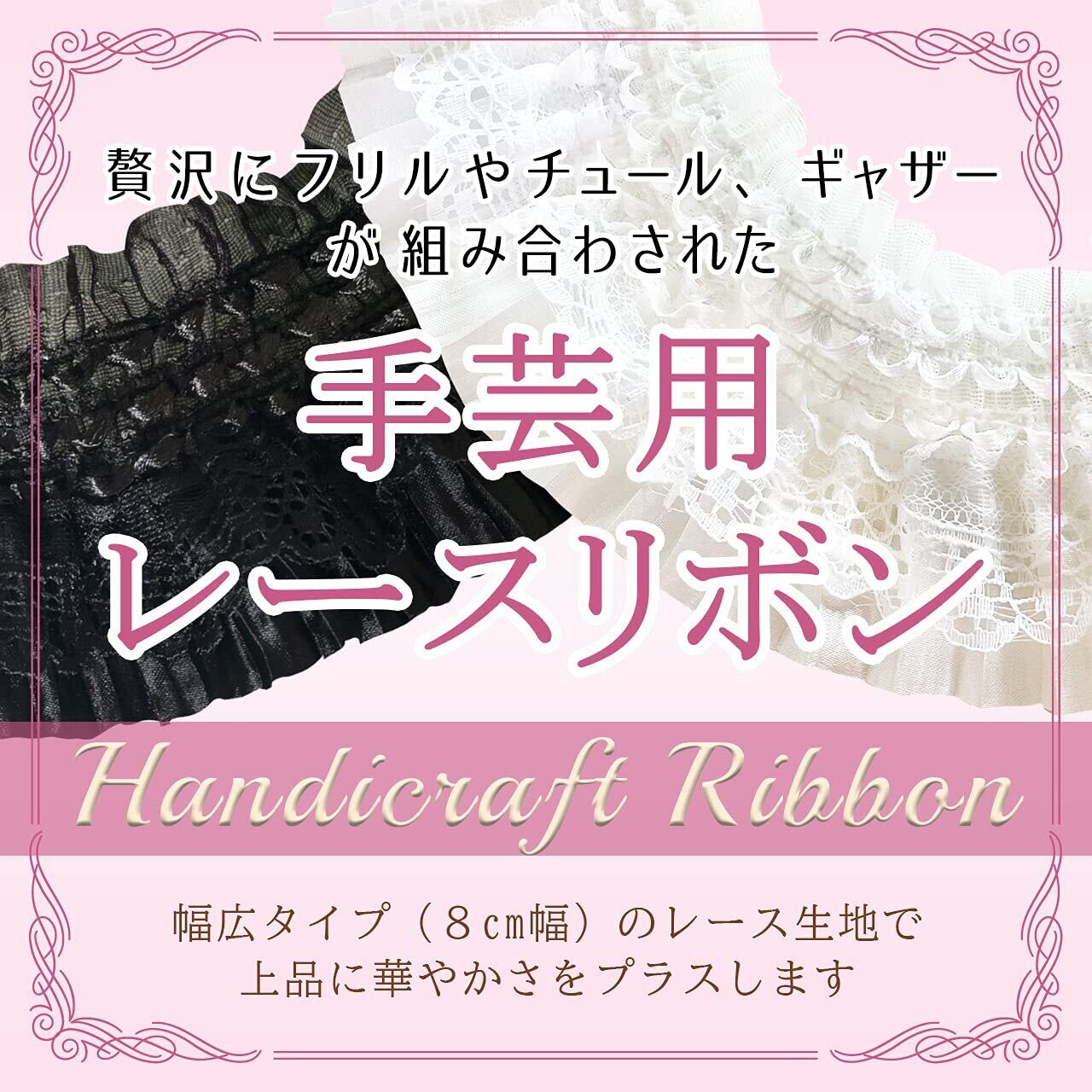 · 贅沢にフリルやチュール、ギャザーが組み合わされた手芸用レースリボンです。幅広タイプ(8cm幅)のレース生地で、上品に華やかさをプラスします。