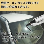 フロントガラスやリアガラス、サイドガラスやあらゆるFIX窓のガラスを、簡単に安全に取り外すことができる工具です。