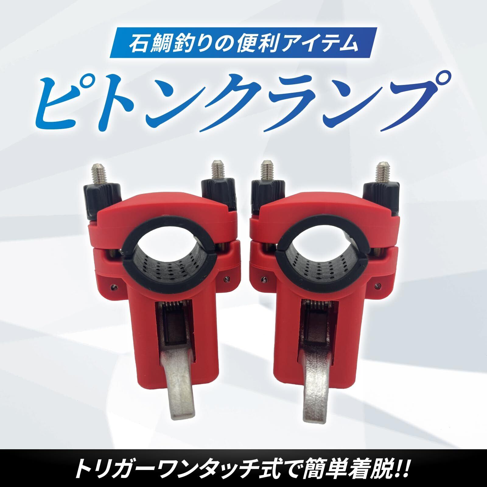 ・石鯛釣りの便利アイテムピトンクランプです。 トリガーワンタッチ式で穂先をブレずに着脱!置き竿から瞬時に手持ちに切り替え合わせられます。・石鯛釣りでは竿受けを使用することが多いと思います。しかし、よそ見しているときにアタリが出て竿が弾いて落水したり、大型のアタリで竿尻を外すことができずバラしそうになった経験はありませんか?・本製品はトリガーワンタッチ式となっておりますので強烈な抑え込みでもピトンから石突が抜けない、なんことはありません。・取り付けも簡単 竿を挟んでネジを閉めるだけ。 取り付け可能な釣竿直径は19~32mmでほとんどの竿に装着可能です。ロッドの傷を防止するラバーグリップを使用しております。・【サイズ】 長さ7.8cm×幅5cm ピトン径8㎜ 【カラー】青 黒 赤 黄 の4色それぞれ2個セットにてご用意しました。お好みに合わせてチョイスしてください。