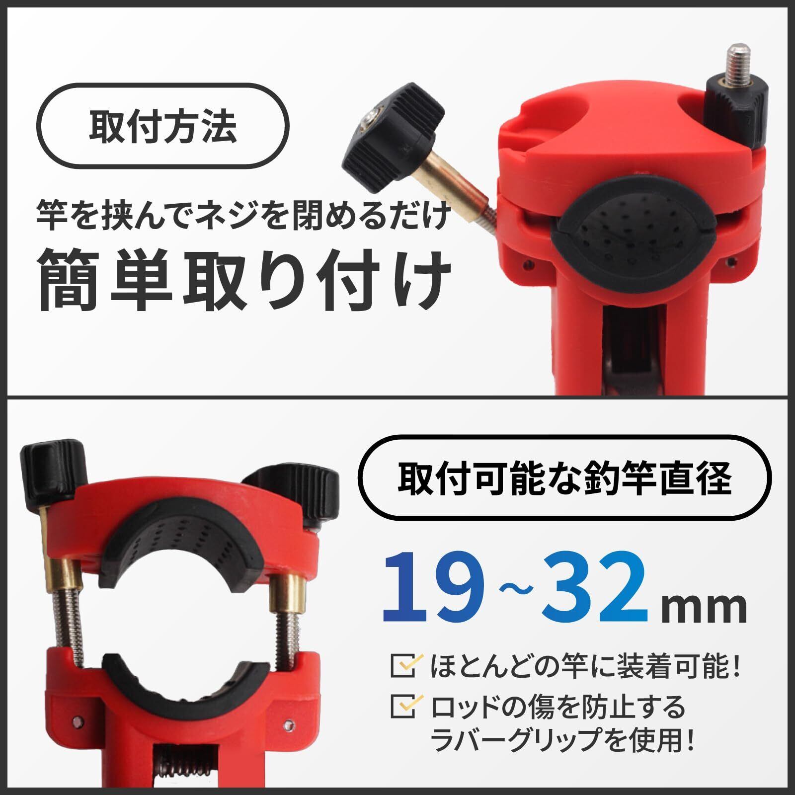 取り付け簡単竿を挟んでネジを閉めるだけ。釣竿直径:19~32mm
