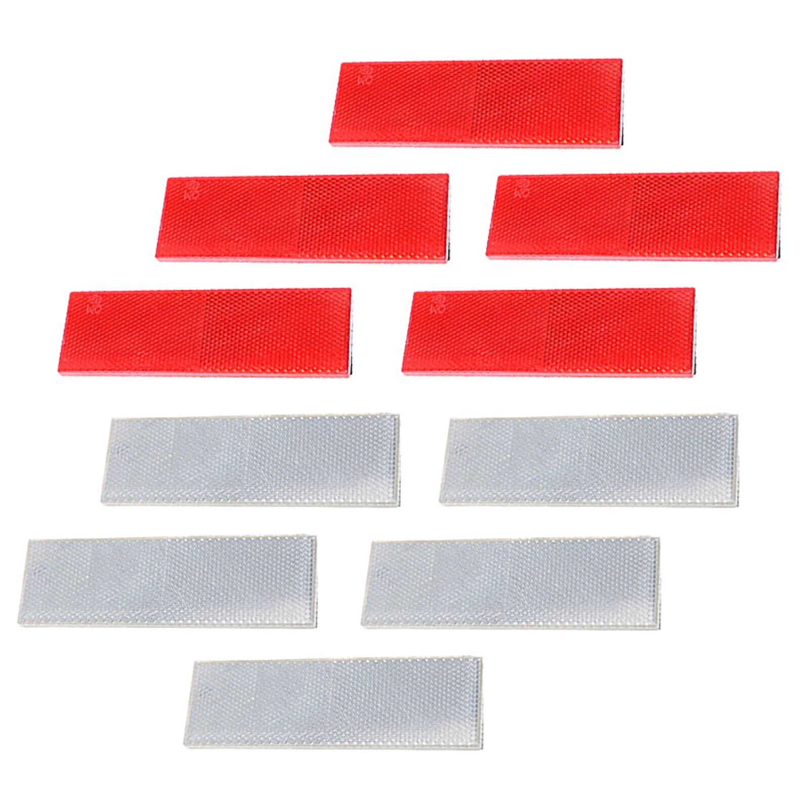 heizi リフレクター 反射 シール 赤白10枚セット 反射ステッカー 車 バイク トラック 反射板 自転車 安全警告 シール 長方形 両面テープ 防水 耐UV (ホワイト&レッド)