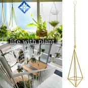 アイアンプラントハンガー(カラー:ゴールド)。ハンギングプランター、エアプランツやドライフラワーなど空間をモダンかつ華やかに彩ります。