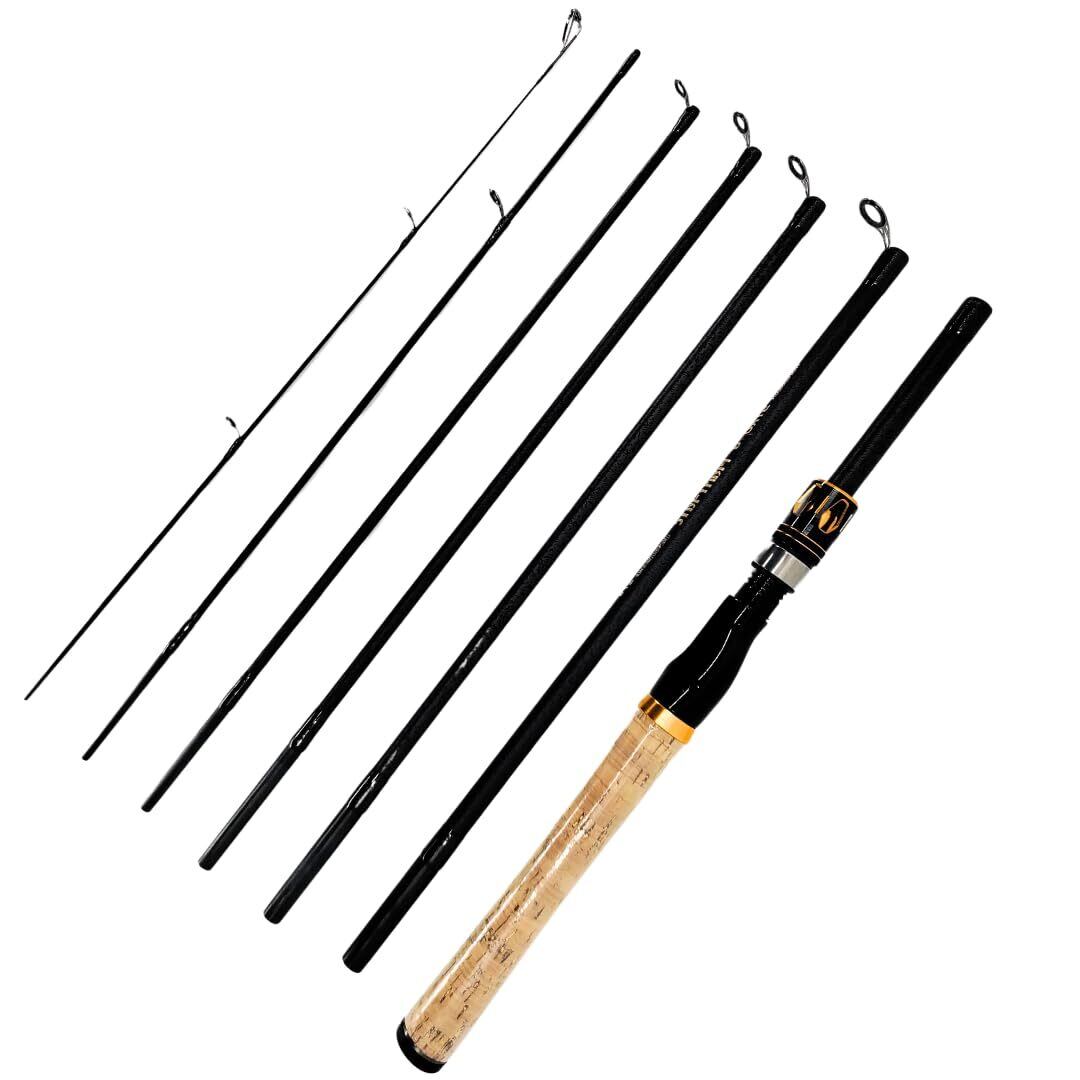 【バス釣りからチニング、シーバスまでオールラウンドに対応】 適合ルアーウエイト:4〜25g(ML相当) 【遠投も可能な長さ】 全長:8.8feet(約2.7m)で、河川やサーフなどのオープンフィールドや足場が高いエリアにも最適 【超コンパクトな7ピースパックロッド設計】 仕舞寸法:43cm(7ピース)で、リュックやキャリーケースにも収まり、モバイルロッドとして抜群の携帯性能 【富士ガイド】 ハイエンドクラスのロッドの一つの目安でもあるfujiガイドを採用。高い硬度で軽量かつ摩擦が少なく、糸を傷つけにくいガイドに。ガイドの巻き糸もUV強化処理済み。 【ジョイント部は密着結合】 7ピースもあるマルチピースロッドだからこそ継ぎ目のジョイント部同士がしっかりと密着して結合するように設計。ジョイント部の摩擦や磨耗を防ぎ、長時間の使用でも緩みが生じにくい。 【安くても長く使って欲しい。交換用トップピース付属】 万一竿が折れても、専用の交換用トップピースが付属していますので、緊急事態が起きても釣りを継続でき安心してお使いいただけます。 【剛性と操作性を両取り】 カーボン素材を高密度で使用し、ロッドの外側は多層に、内側は大手メーカーの上位種でも使用しているX巻きの技術で製造することでロッド自体の強度と竿に伝わる力を強化。より快適な操作を実現しました。 【高配合カーボンの軽量ロッド】 カーボン含有量が高いため8.8ftで138gという軽量化を実現 スピニング、ベイトの2種類 重量:138g