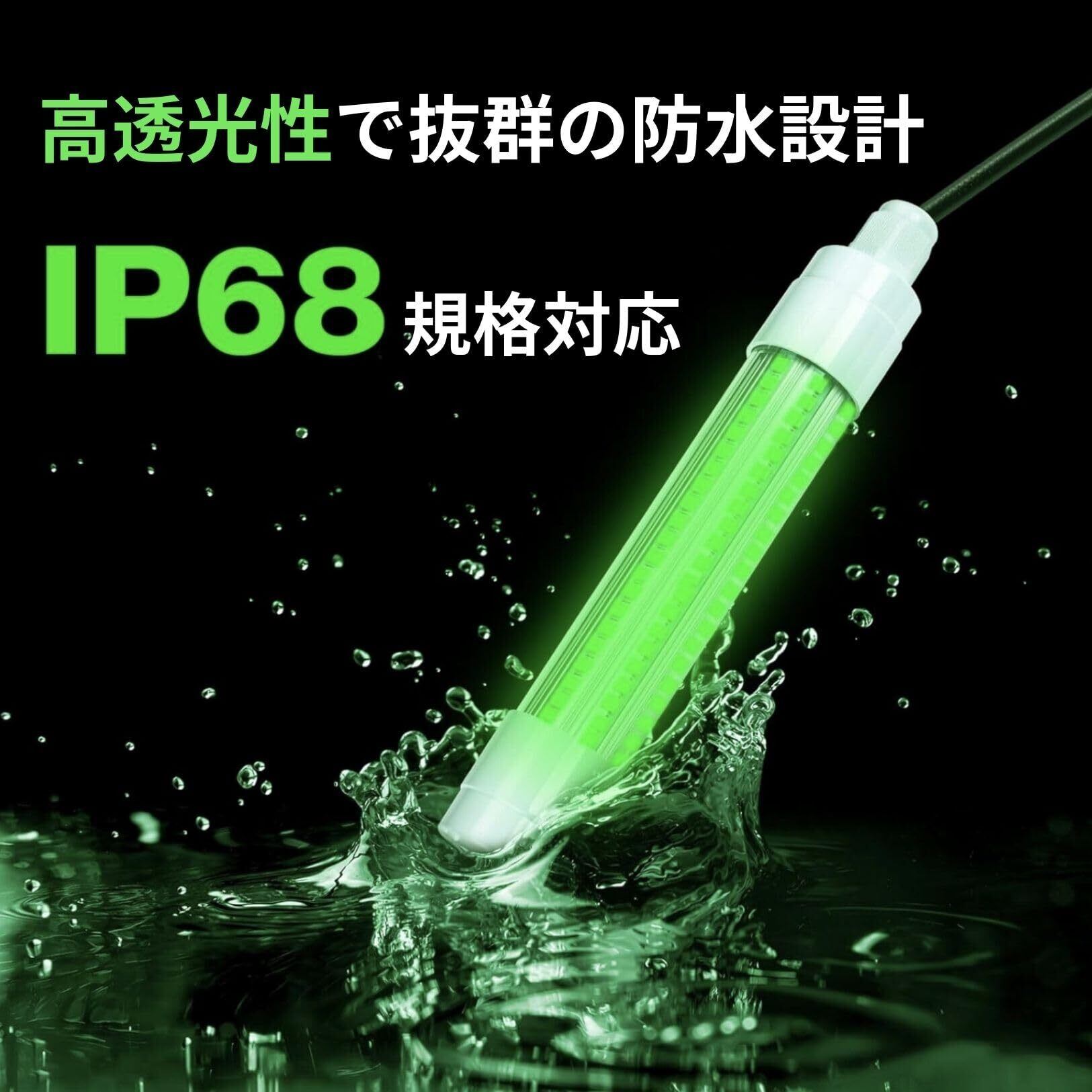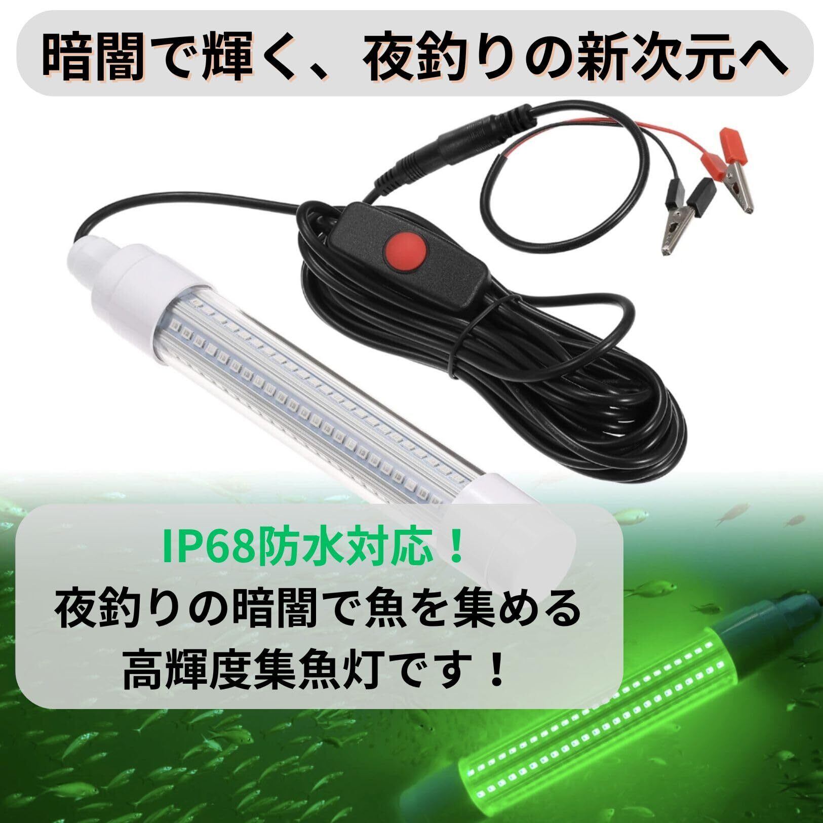 ● セット内容:本体、約5mの配線、ワニ口クリップコード(約30cm)● 集魚灯本体サイズ:約215×28mm(配線約5m) ● 使用電源:車或いは船のバッテリー ● 定額電圧:12V~24V ● 消費電力:10.5w ● 質量 :約370g ● 防水性 :IP68 ● 使用寿命:約30000時間 ● 使用環境:淡水&海水の水中、水温60℃以下 ● 光源:高輝度LED(緑) ● 光束:1000lm ● 光角:360° ● 波長:500nm ● LED数:120"