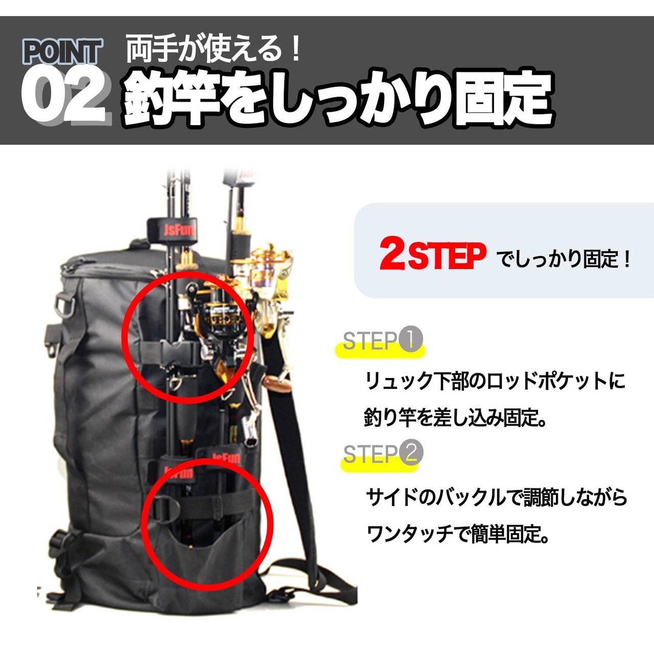 【30L収納容量】30リットルの収納容量は、釣り用具やタックルボックスの収納に十分なスペースを提供します。必要な道具をすべて持ち運びできます。