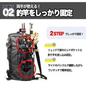 【3WAYキャリーオプション】このリュックサックは、手提げ、肩掛け、バックパックの3WAYで使えます。釣り場への持ち運びが快適で、さまざまな状況に対応します。