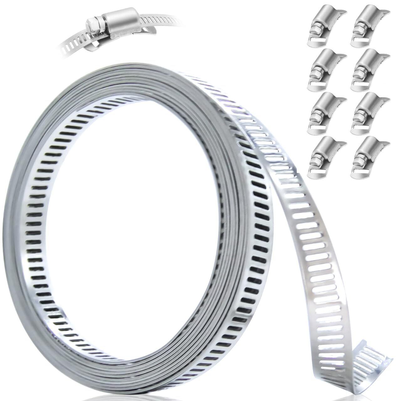 UME-STAR ホースバンド 8mm幅 ステンレス クランプ バンド 自在バンド (長さ 4m 留め具 8個)