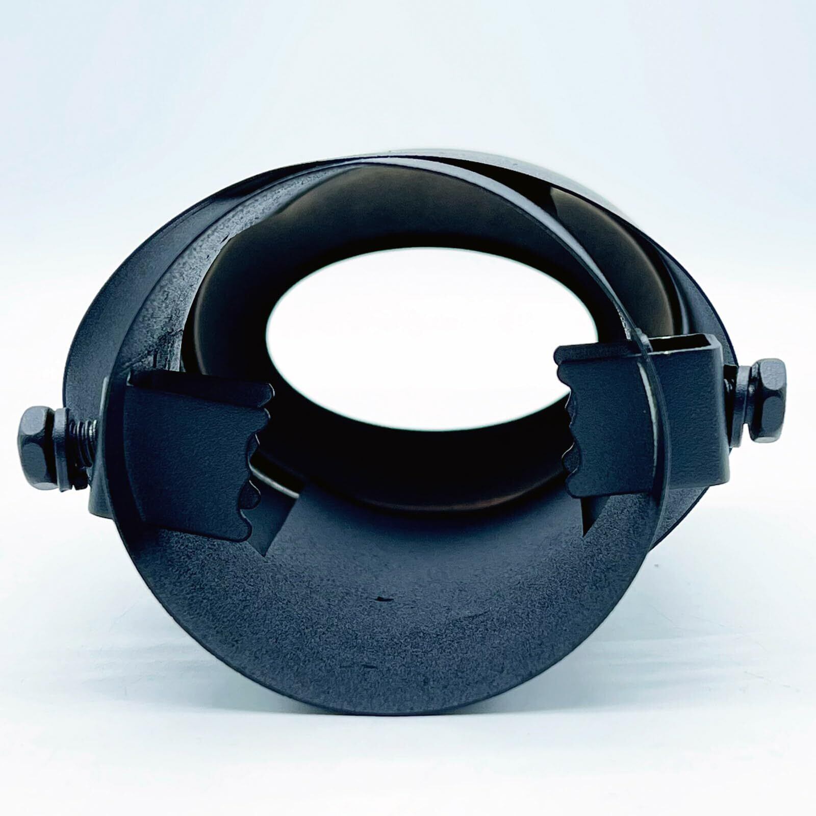 ボルト締め付けタイプで取り付けも簡単。取り付け可能な管外径は38mmから53mmです。必ずお車のマフラー形状をご確認ください。