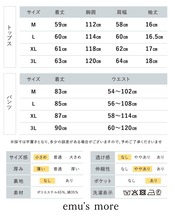 トップスは丸首で、二の腕が隠れる程度の袖丈となり、肩にはライン入りです。ボトムは裾に向かいスリムなシルエットとなり、足首が出ることで、抜け感がありすっきりとした印象を与えてくれます。ポケット付きとなり、機能性も◯