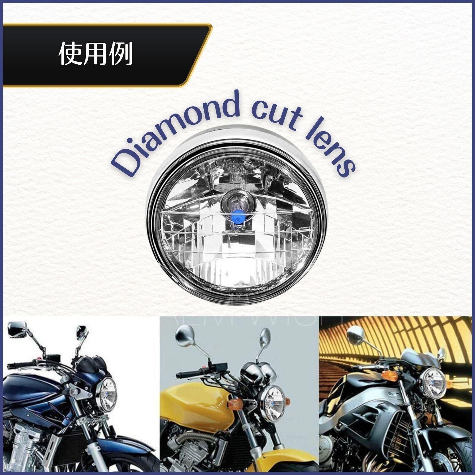 calm wish バイク ヘッド ライト 丸目 マルチ リフレクター ダイヤモンド カット クリア レンズ カスタム 交換 汎用 ハロゲン ランプ Ф180