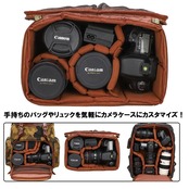 手持ちのバッグを本格的なカメラバッグにカスタマイズできる中仕切り。大切なカメラ本体やレンズがバッグ内で擦れて傷が付く事を防いでくれます。