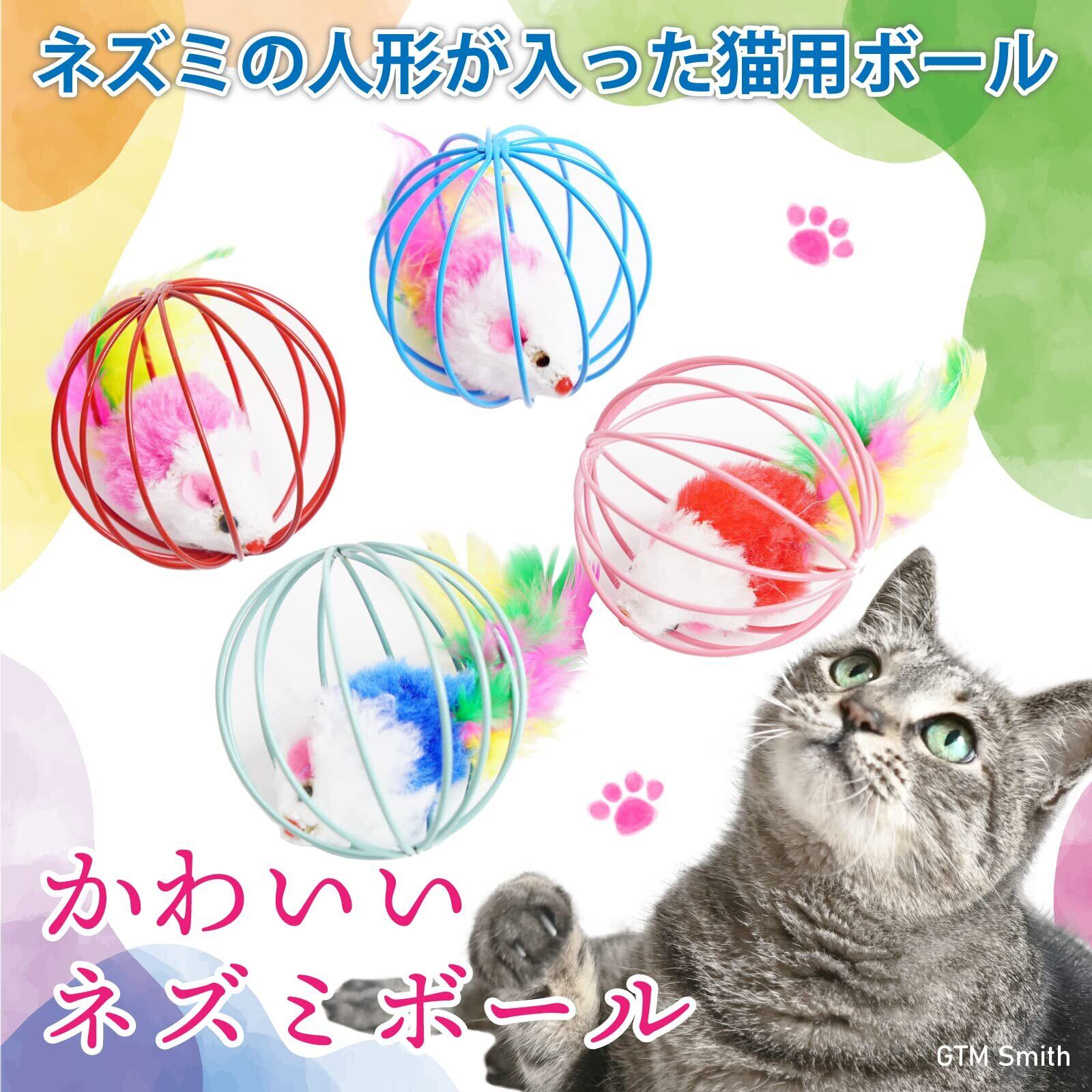 GTM Smith 猫 おもちゃ ネズミ ボール 猫のおもちゃ 羽 ねこ ネコ 玩具 オモチャ ねずみ 羽付き 羽根 4個