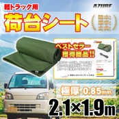 サイズ(約):2.1×1.9m(作成上多少の誤差が生じることがございます) 厚み0.85mm 色:グリーン ハトメ数:18個(真鍮 防錆加工済)商品重量:約3kg 一般的な軽トラックの荷台シートよりややワイドなので、多めに積んだ時もしっかりカバーできます。
