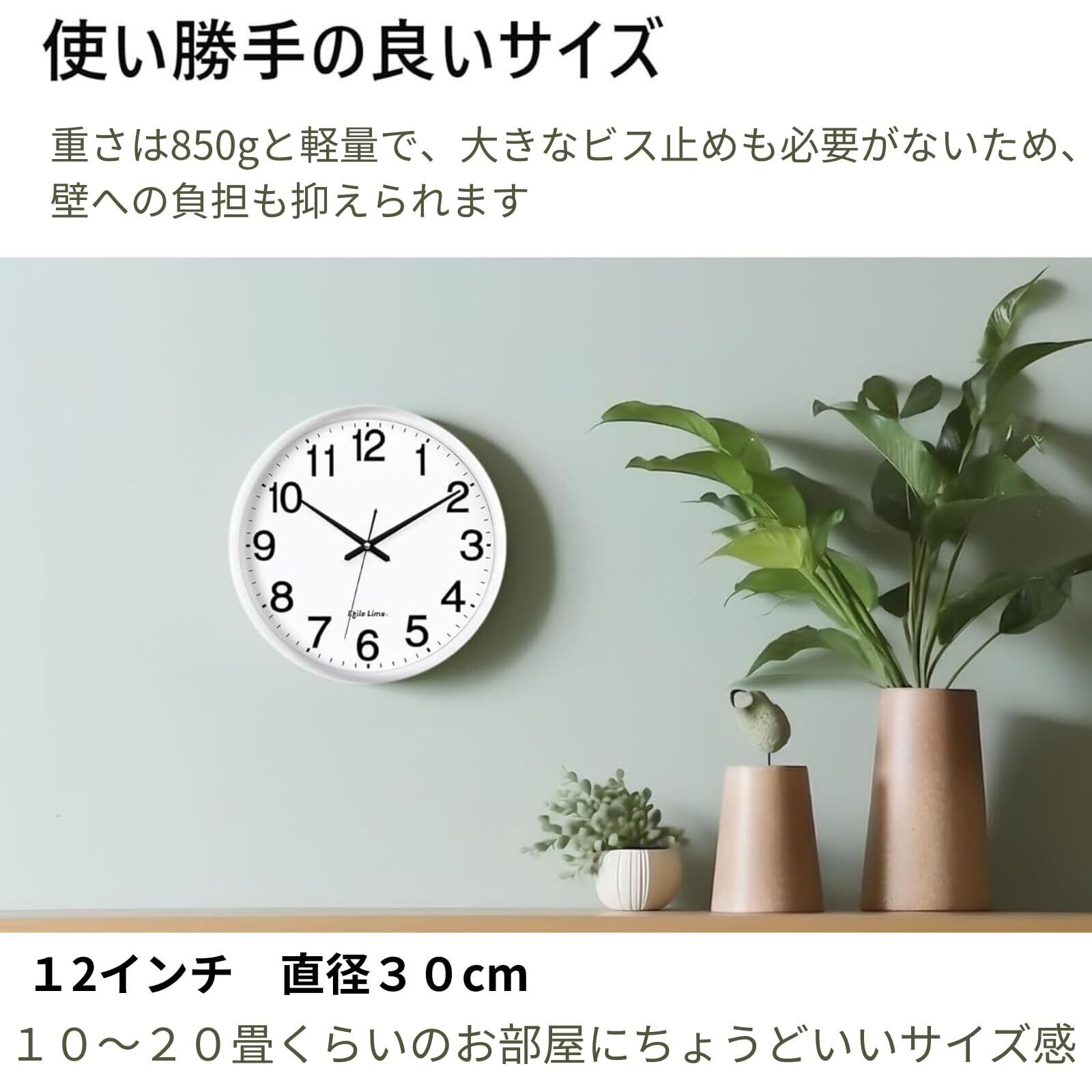 【時計サイズ】12インチ(直径 約30cm) ・厚さ 約 5cm・重さ 約850g【カラー】ナチュラル・ホワイト・ブラック【バッテリー】単三電池1本(別売り)