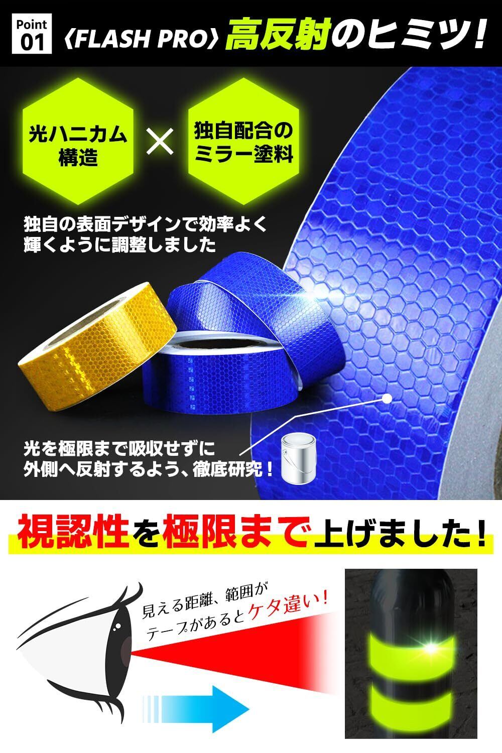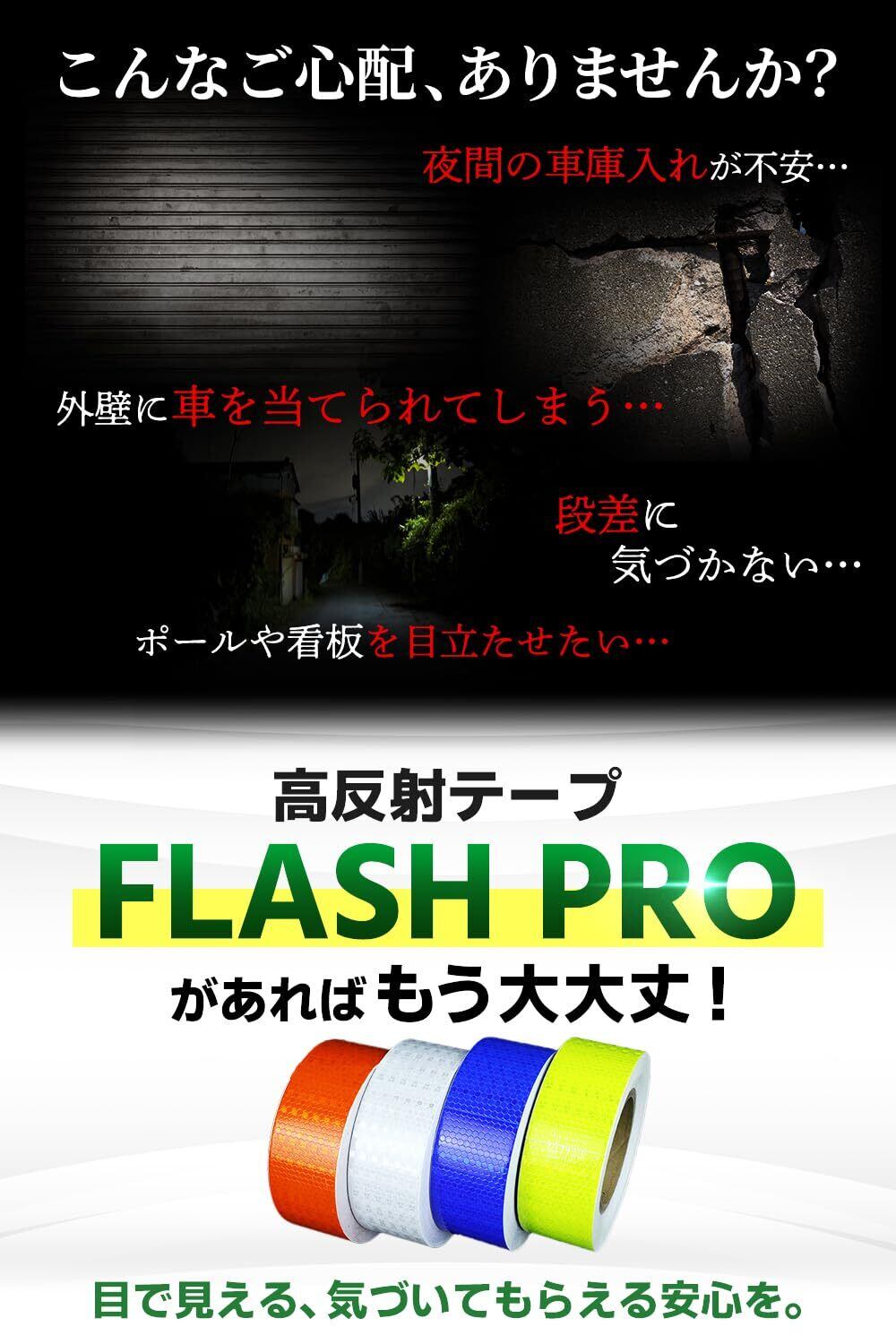 高反射テープ FLASH PRO 完全プロ仕様 安全の専門家監修の元、商品開発を行いました。