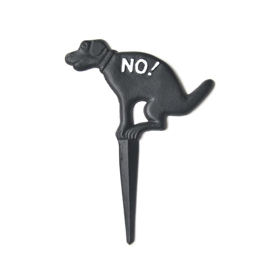 【デザイン】犬が排便しようとしているイメージをNO!と示す目立つ金属製の頑丈な立て札。シンプルで分かりやすいデザインです。ガーデンオーナメントとしてもお使い頂けます。