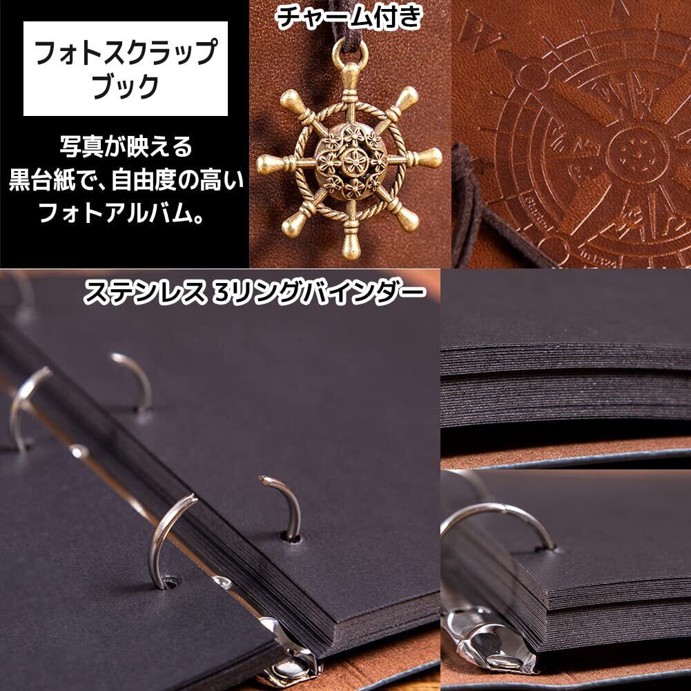 高級感のある良質のPUレザーを表紙に使用しています。防水、防塵、劣化を防止する素材ですので長くご愛用頂けます。レトロなイカリのチャーム付きフォトスクラップブックです。
