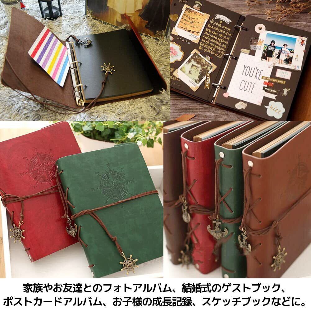 [FUPUTWO] フォトアルバム スクラップブック DIY 手作り 写真 航海日誌 黒台紙 大容量 (レッド)