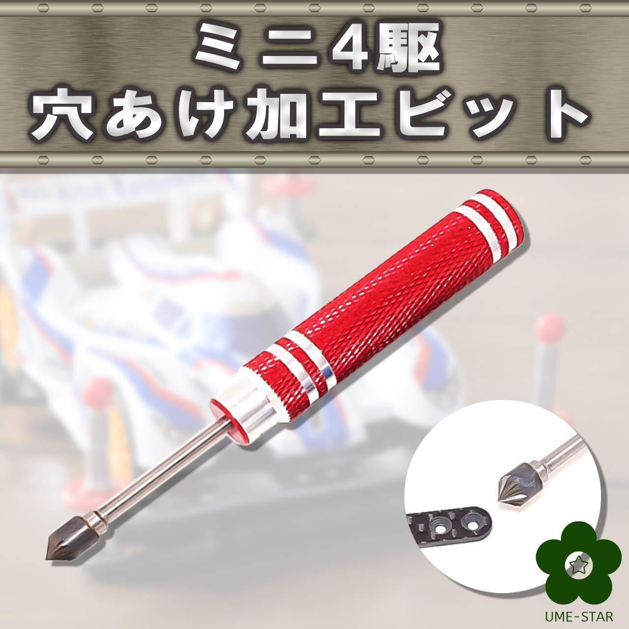 (UME-STAR) ミニ四駆 プラモデル 穴あけ 加工 ビット 穴あけパンチ 手動 ドリル 穴開け 工具 ドリルビット (レッド)