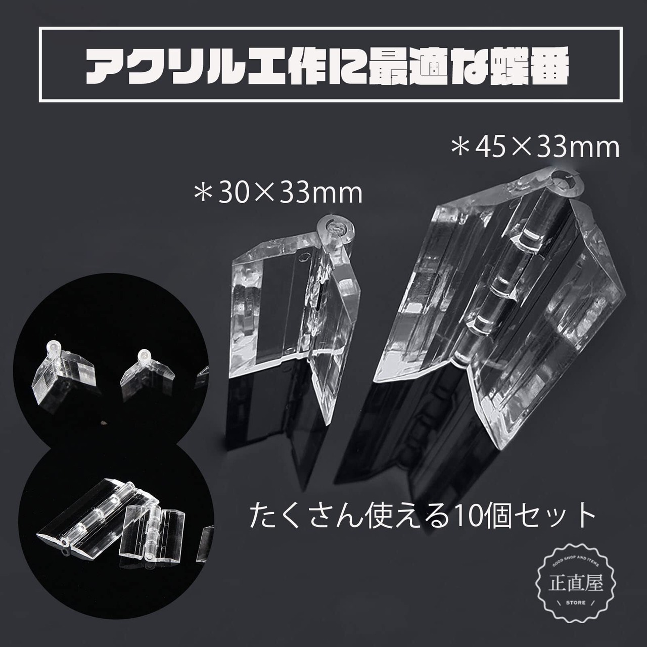 正直屋 透明 アクリル蝶番 アクリル ヒンジ 兆番 折り畳み式蝶番 透明ヒンジ 10個セット (4533mm)