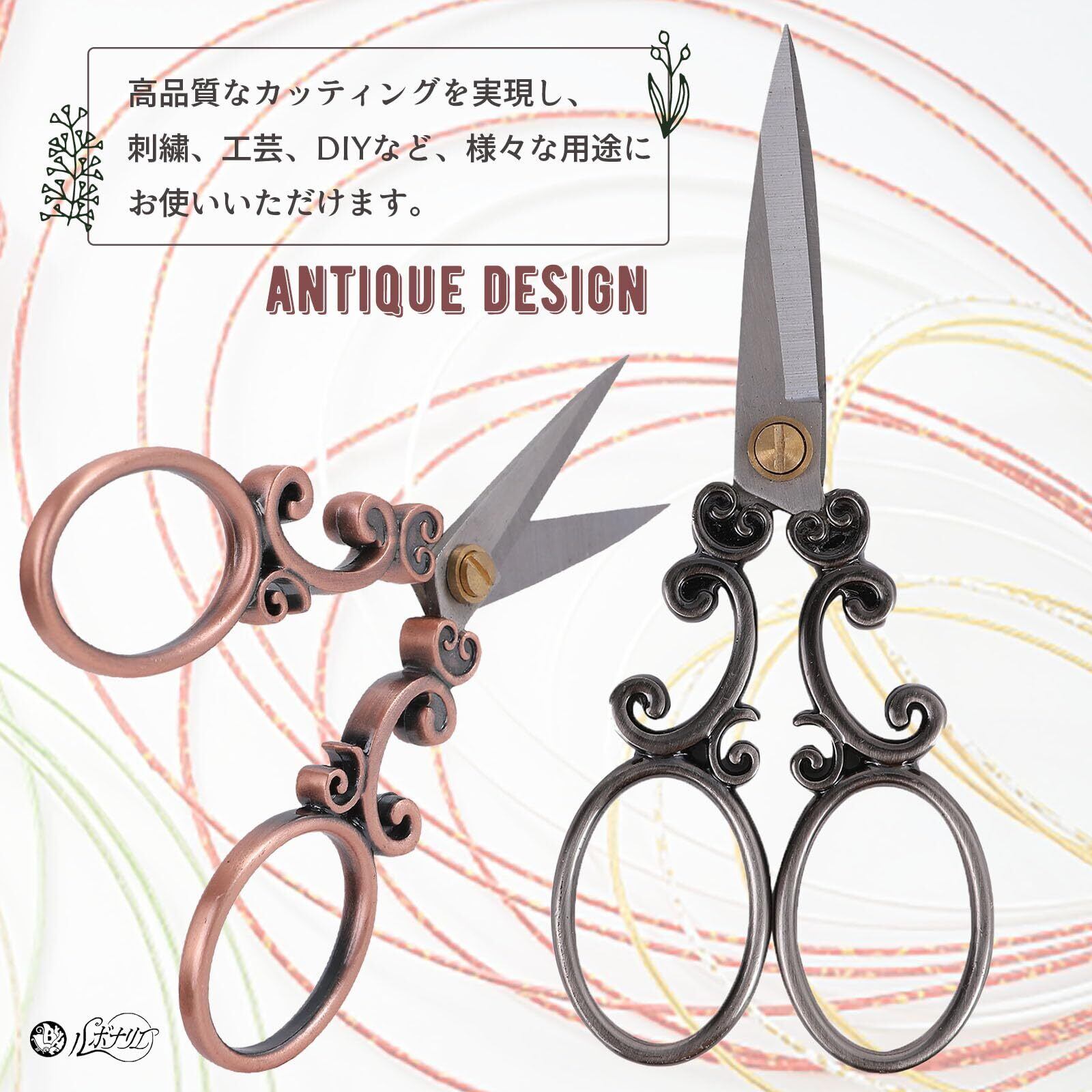 ルボナリエ 手芸 ハサミ アンティーク 糸切りはさみ 手芸はさみ ヴィンテージ ステンレス 古典的 カッティング 刺繍工芸 DIY カッティングツール (シルバー)