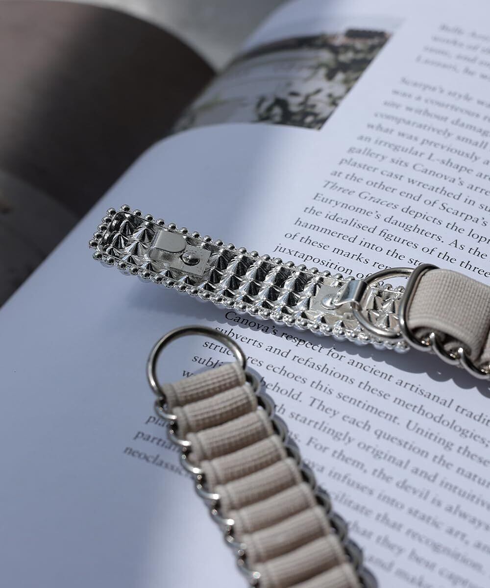フロント部分はシングルフック式で、簡単に着脱可能です。伸縮性の良いゴム使用で、着脱がストレスフリー。1つ持って置くことで、いろんなオケージョンに活用できます。