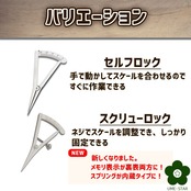 スクリューロックタイプは、ネジで調整するのでしっかり固定できます。スプリングが内蔵になり、見た目もすっきりし、作業中にスプリングが外れてしまうこともなくなりました。また、メモリ表示が裏表両方になり、どのように使っていてもロックしている幅が確認できます。